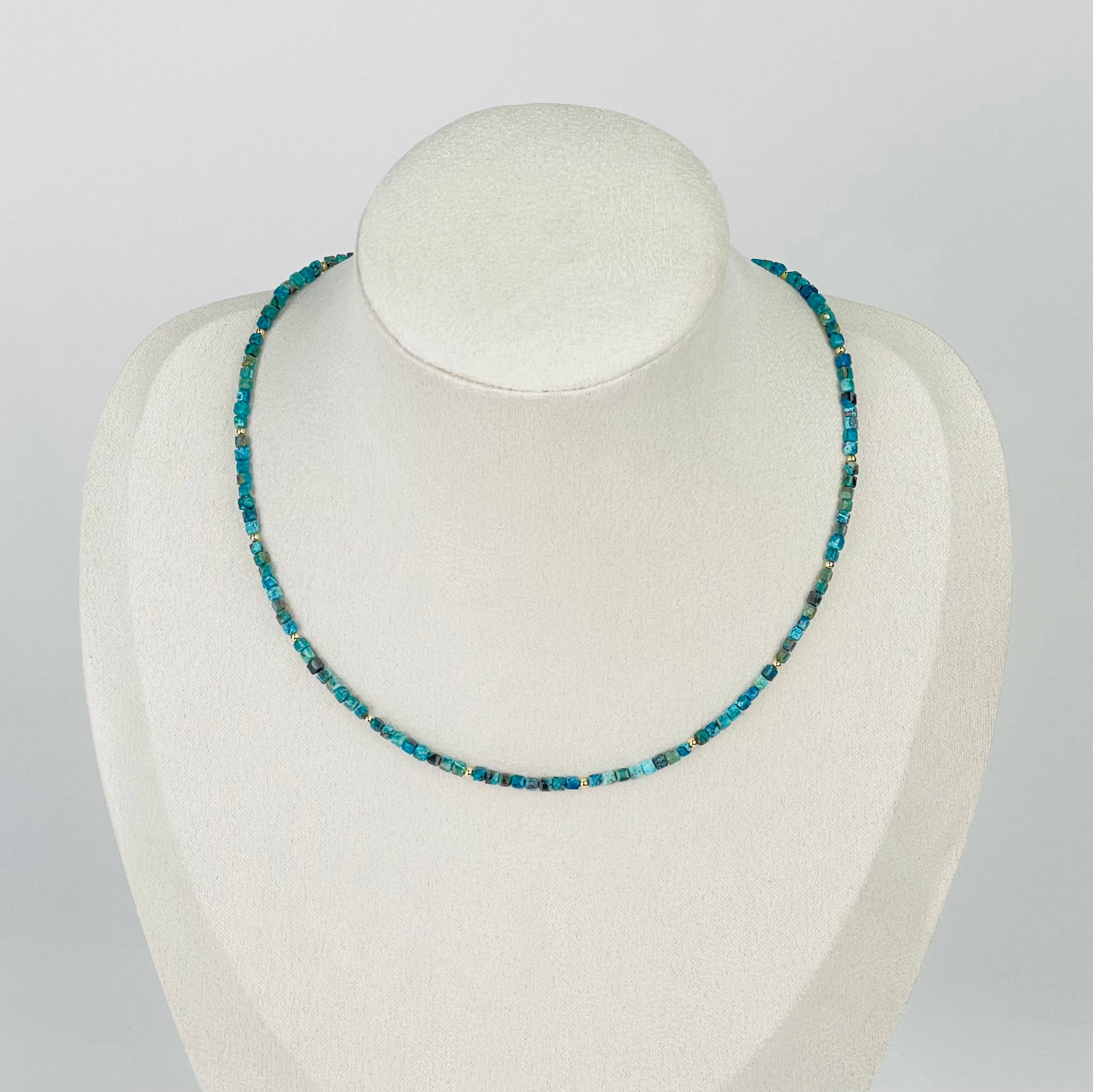Цвет камня: Синий Месторождение: ..показатьСША Камень: Хризоколла Покрытие: Золото 14К Поверхность: Граненый Размер: 3х3 мм Производитель: Радуга Самоцветов (Россия) Тип замка: Карабин с цепочкойСША