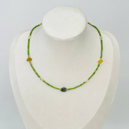 Радуга Самоцветов Колье из Хромдиопсида, Турмалина и Пренита