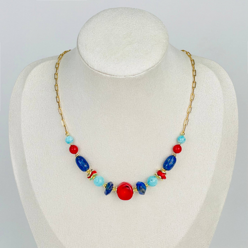 Радуга Самоцветов Колье из Коралла, Лазурита и Амазонита