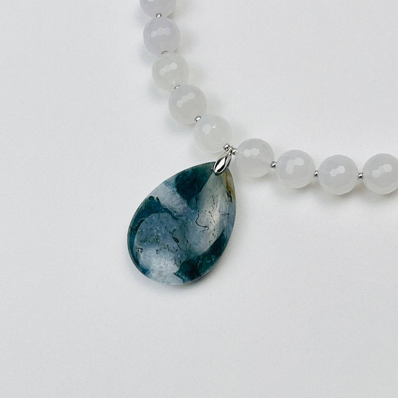 Радуга Самоцветов Колье из Кварца с кулоном из Мохового агата