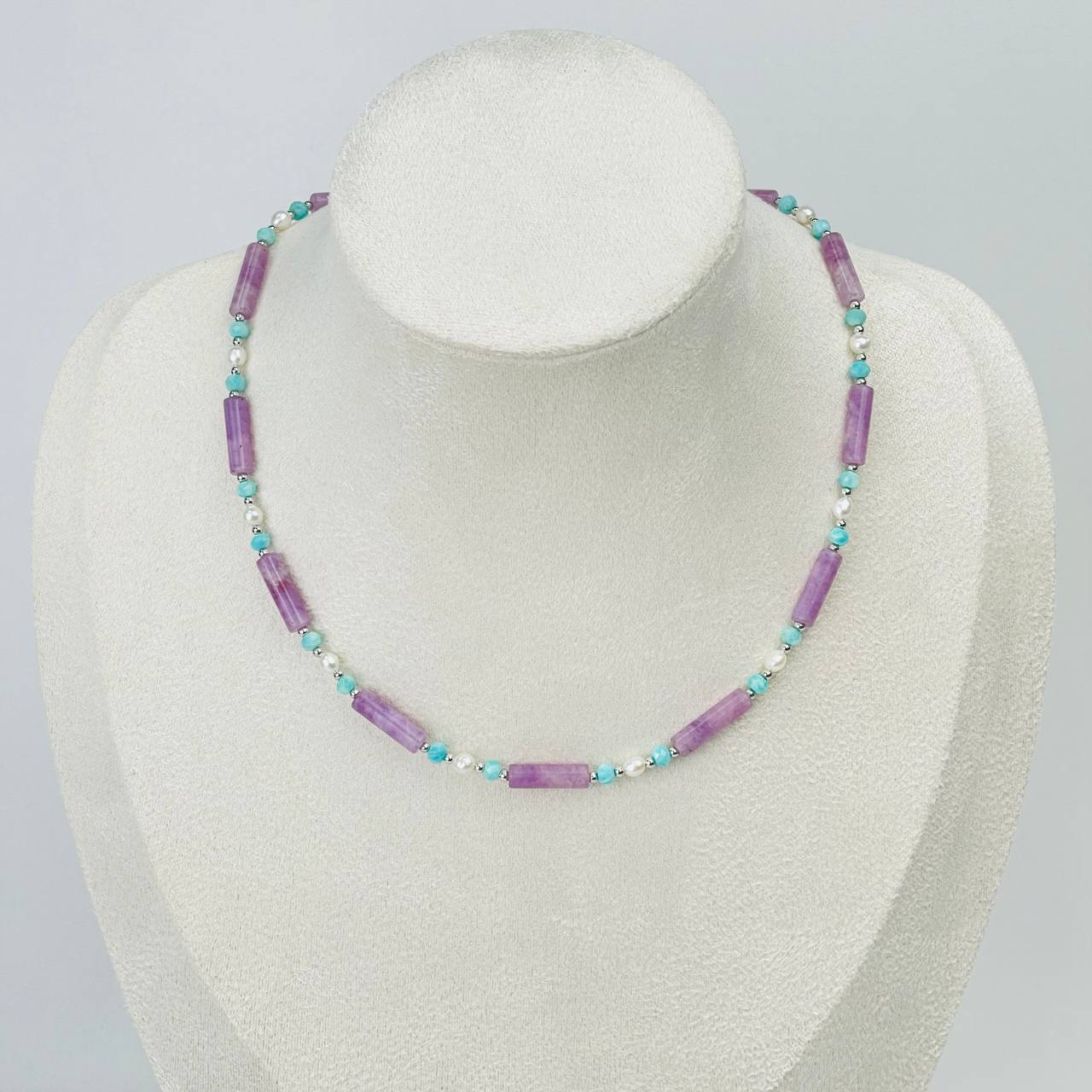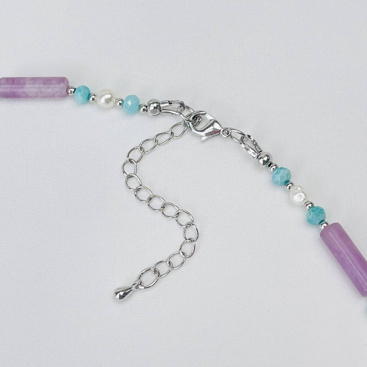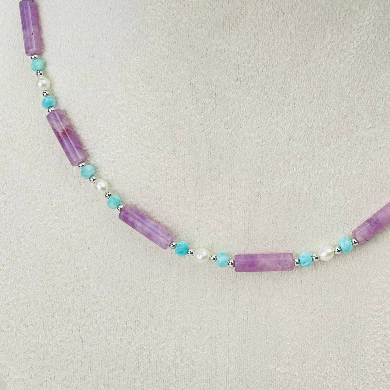 Радуга Самоцветов Колье из Лепидолита, Амазонита и Жемчуга