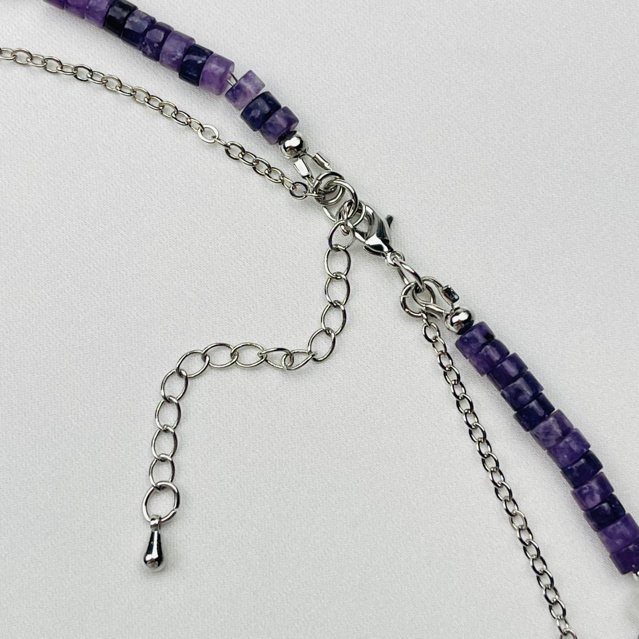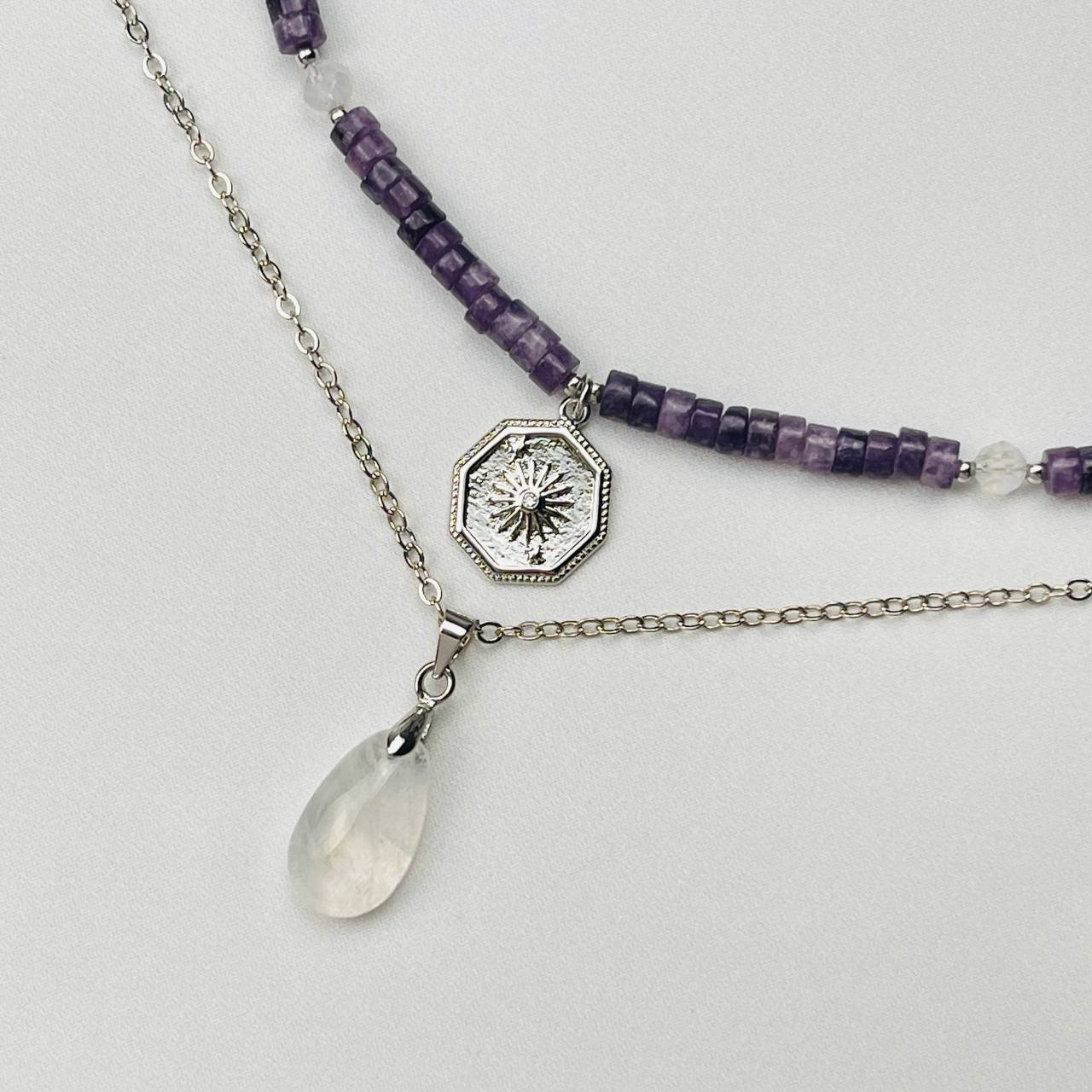 Радуга Самоцветов Колье из Лепидолита и Лунного камня с подвской