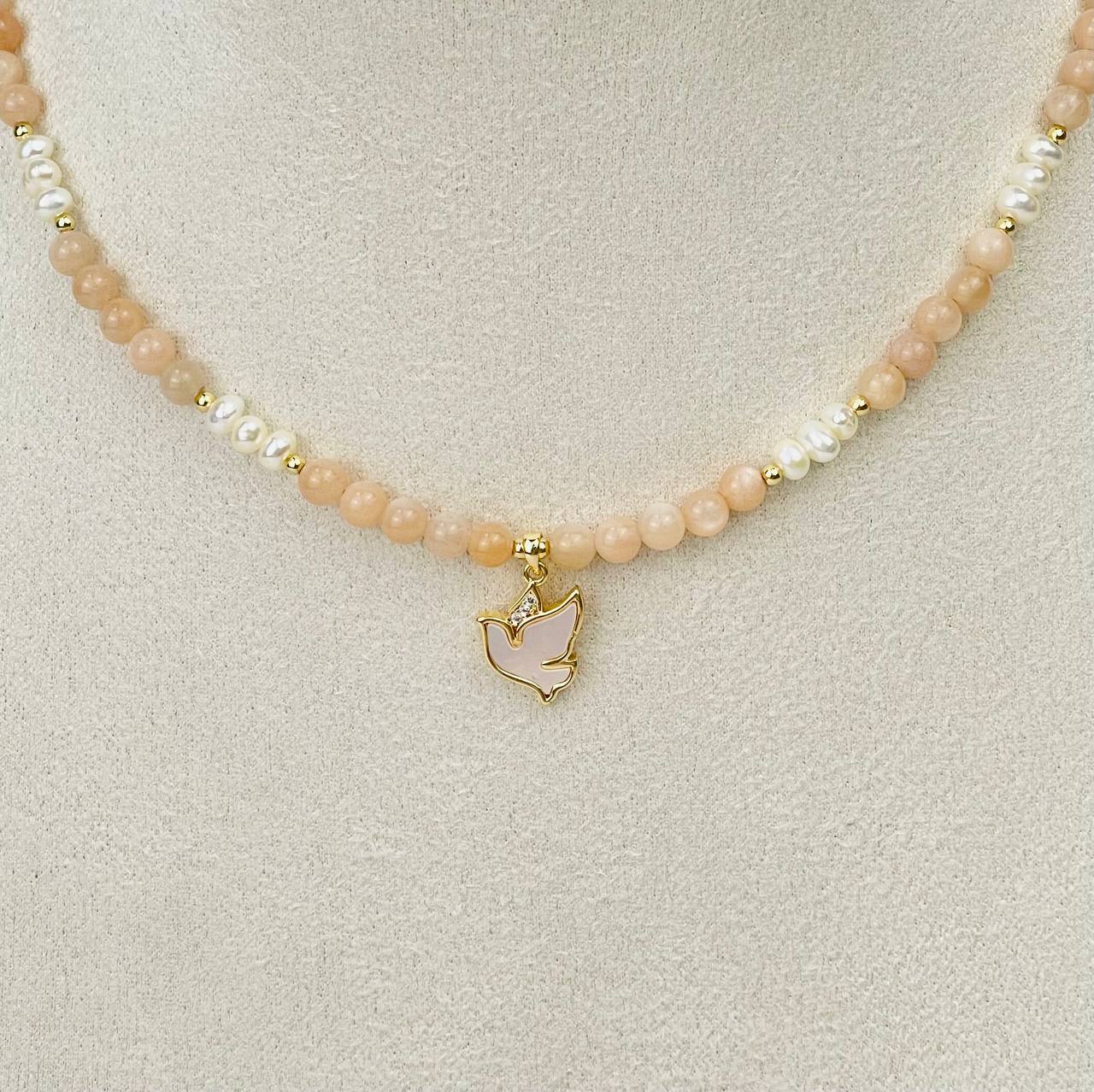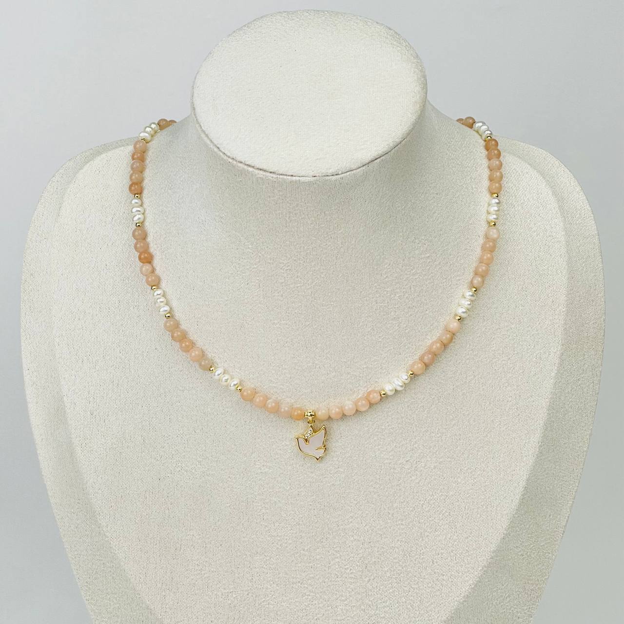 Радуга Самоцветов Колье из Лунного камня и Жемчуга с перламутровой подвеской