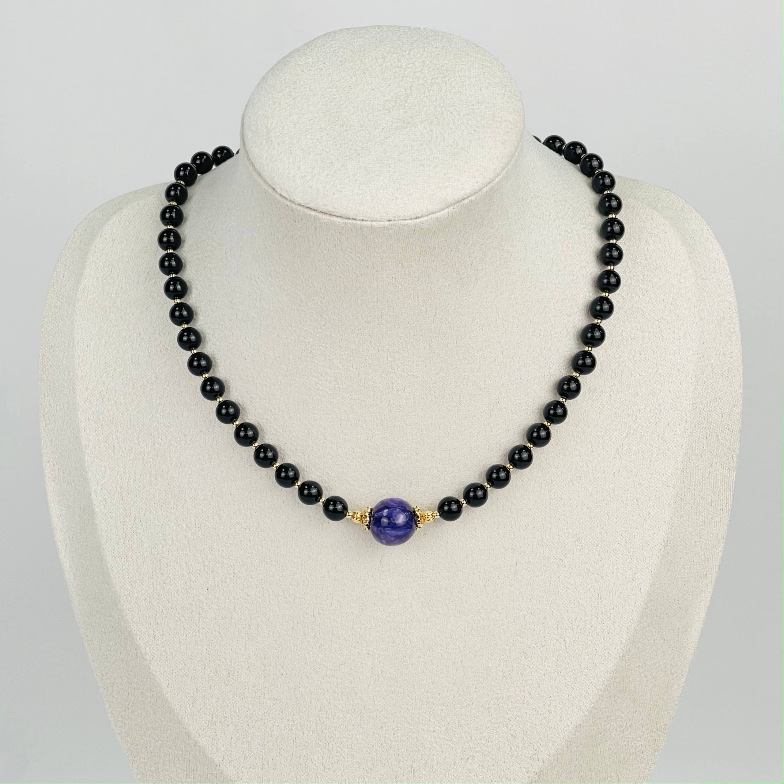 Радуга Самоцветов Колье из Обсидиана и Чароита