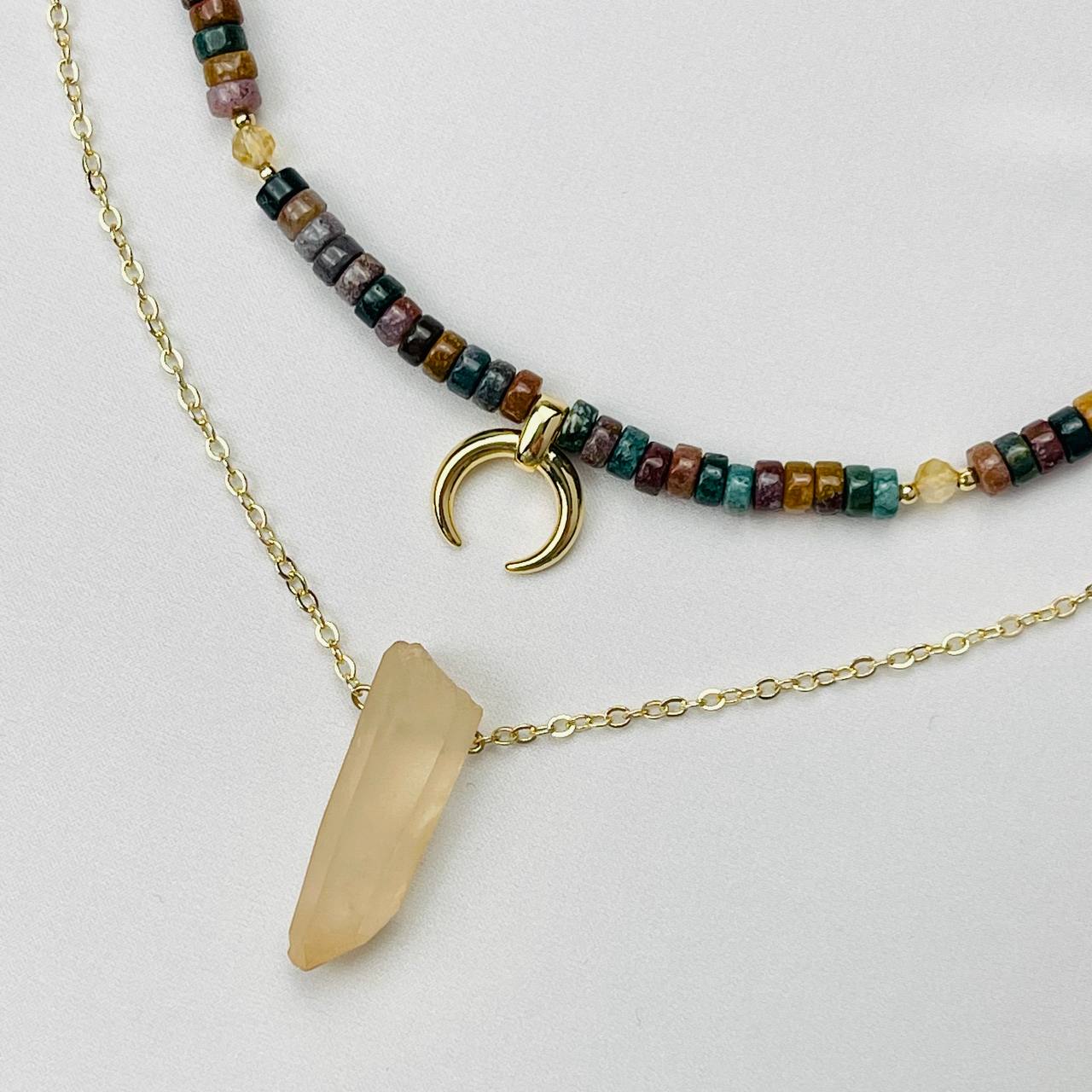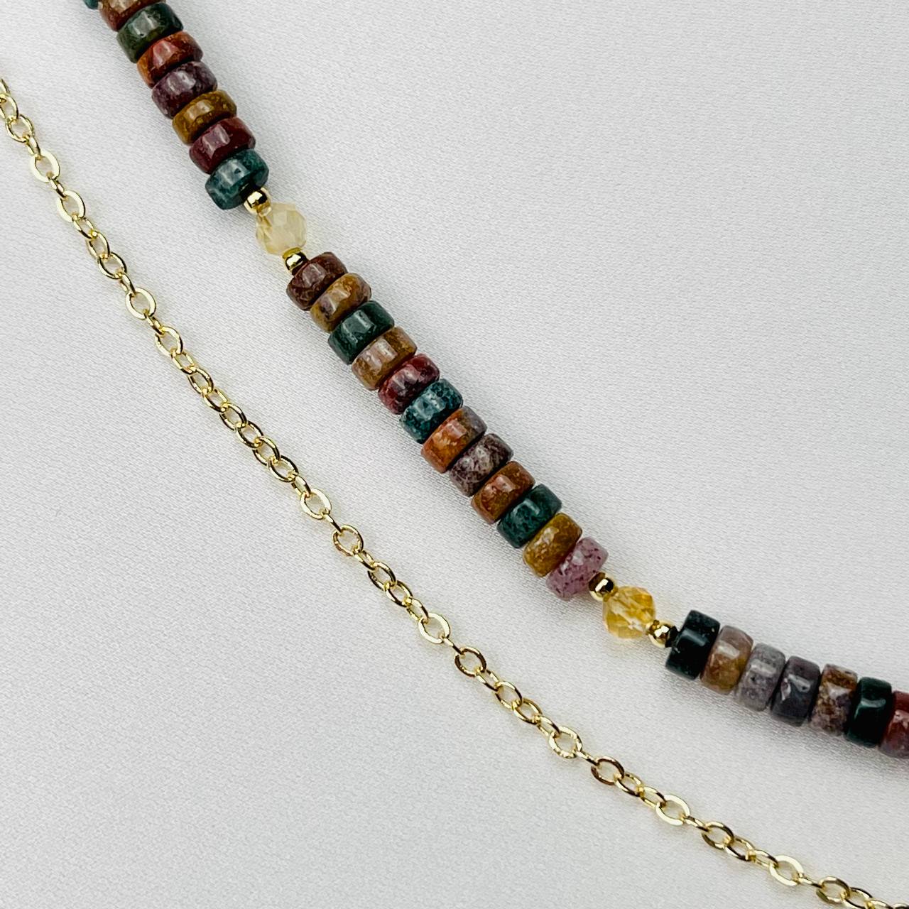 Радуга Самоцветов Колье из океанической Яшмы,Цитрина и Горного Хрусталя