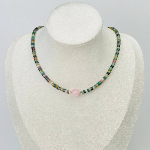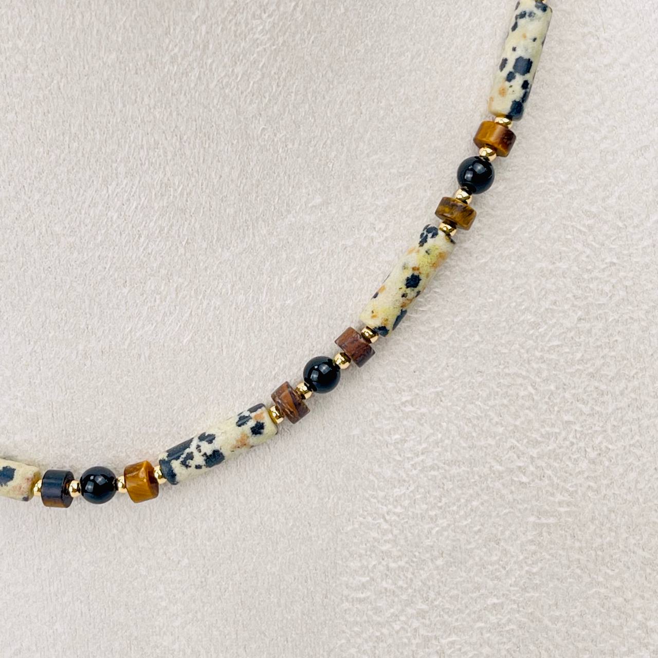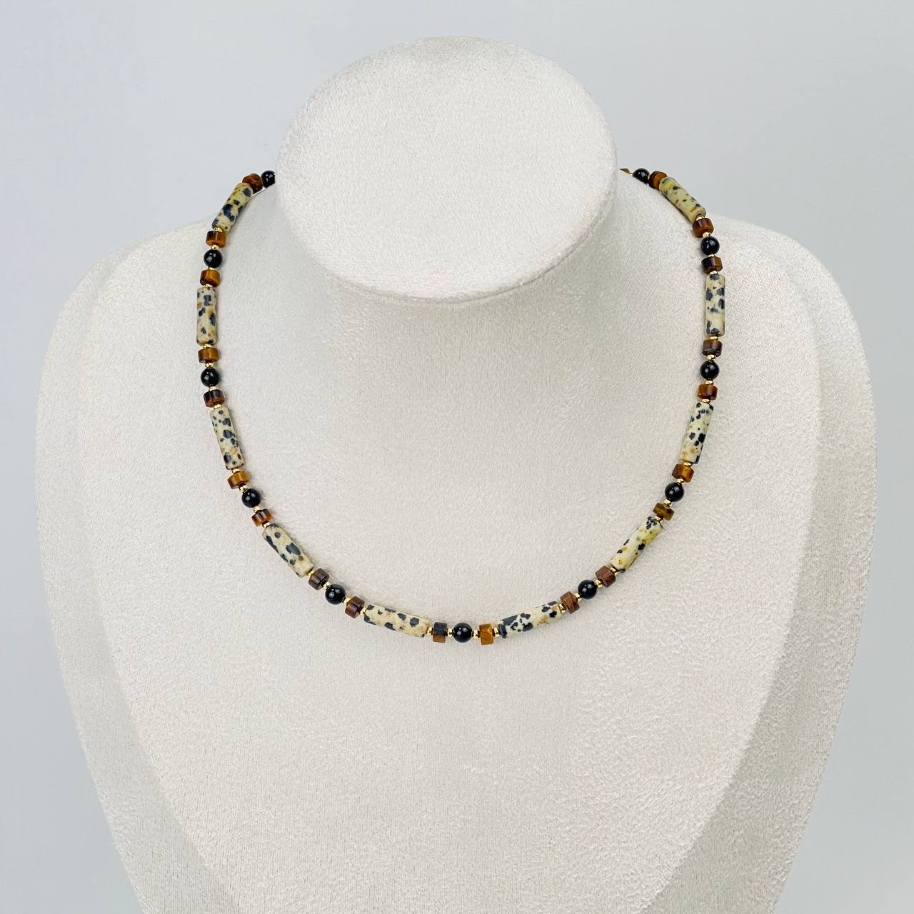 Радуга Самоцветов Колье из перепелиной Яшмы, Агата и Тигрового глаза