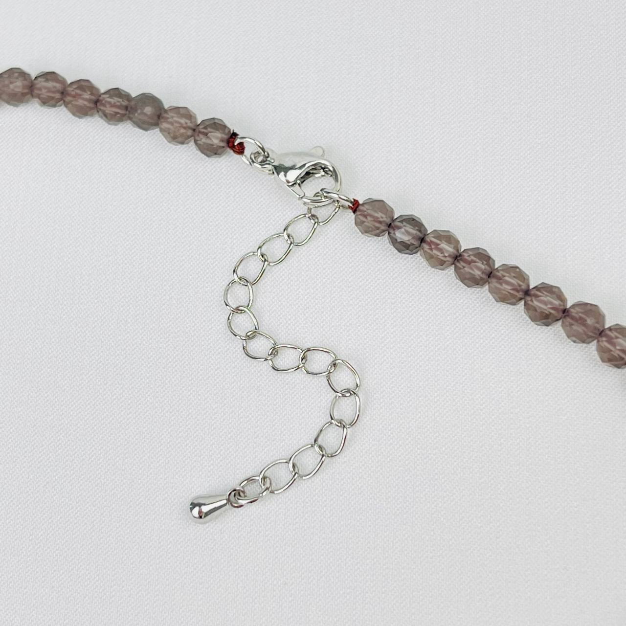 Цвет камня: Коричневый Месторожде..показатьние: Бразилия Камень: Раухтопаз Покрытие: Бижутерный сплав Диаметр: 4 мм Поверхность: Граненый Производитель: Радуга Самоцветов (Россия) Тип замка: Карабин с цепочкойние: Бразилия
