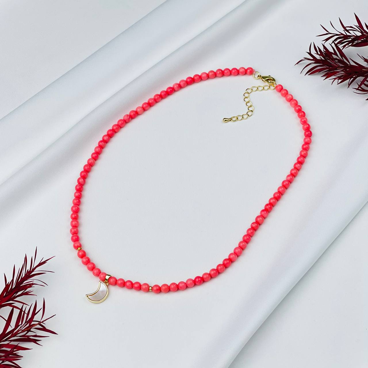 Радуга Самоцветов Колье из розового Коралла с подвеской месяц