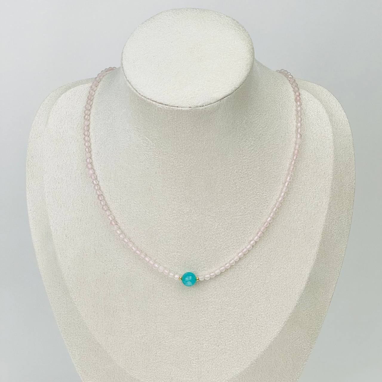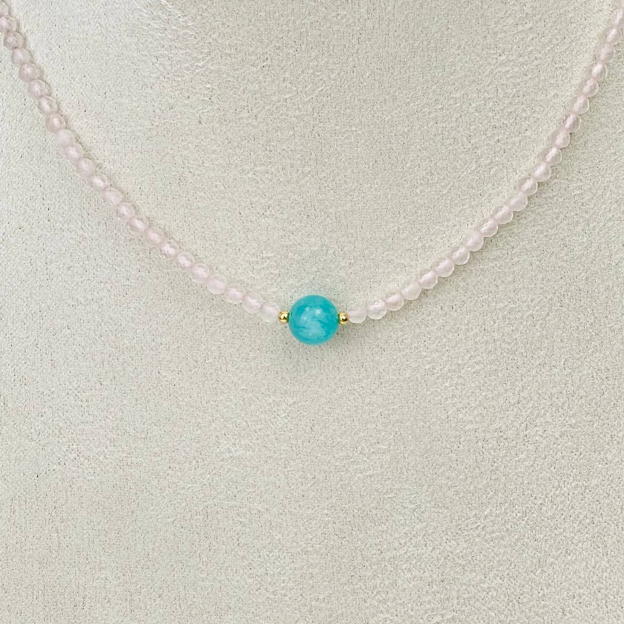 Радуга Самоцветов Колье из Розового кварца и Амазонита