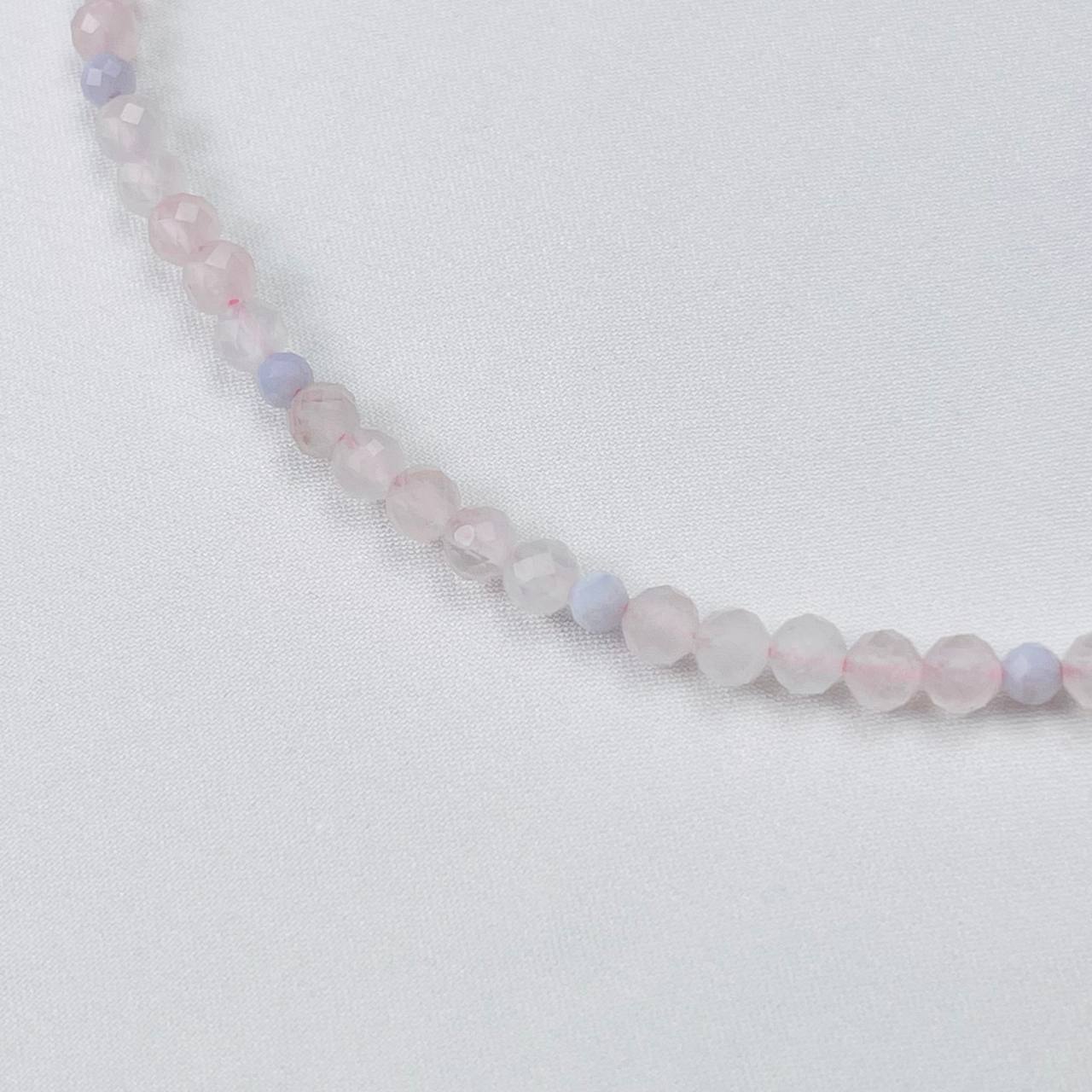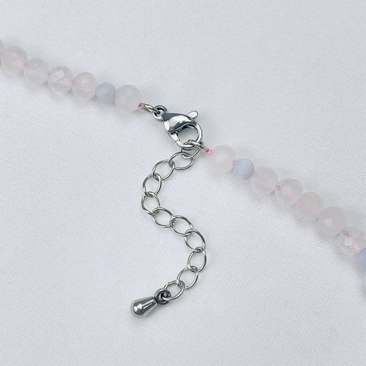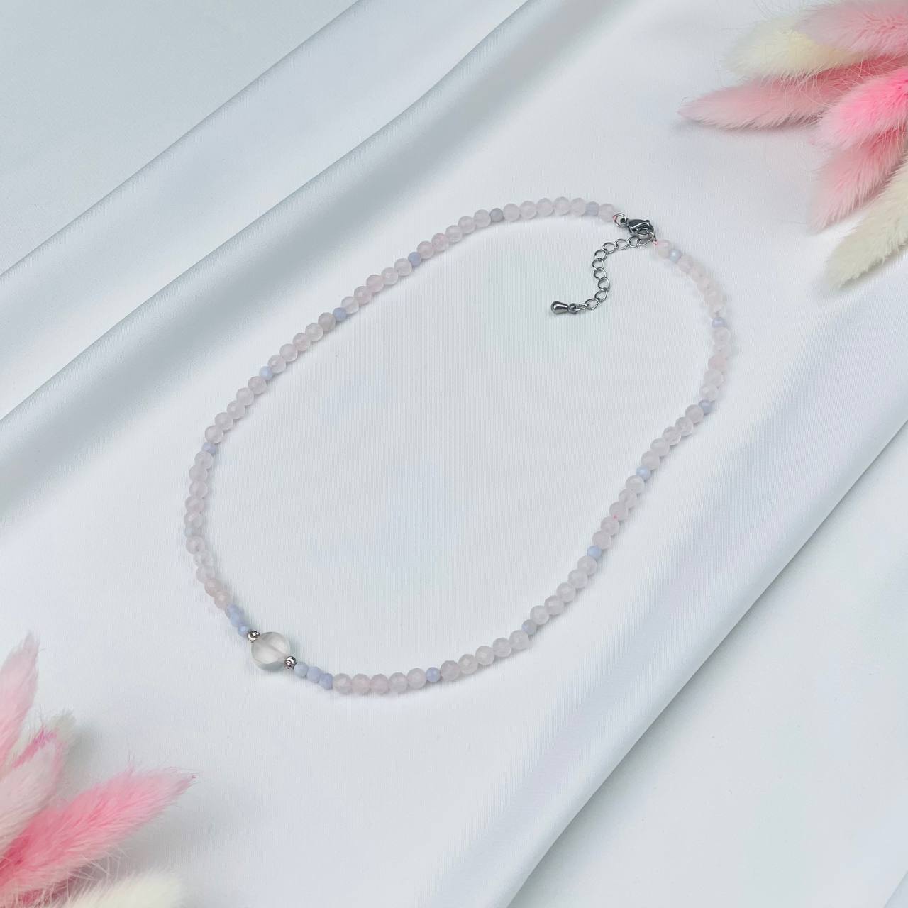 Радуга Самоцветов Колье из Розового кварца и Голубого агата