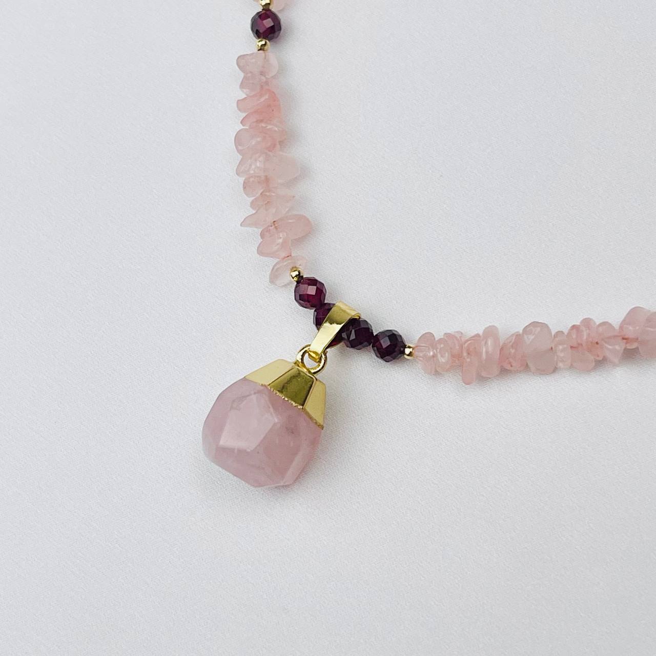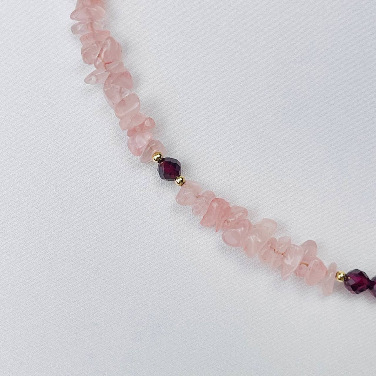 Радуга Самоцветов Колье из Розового кварца и Граната