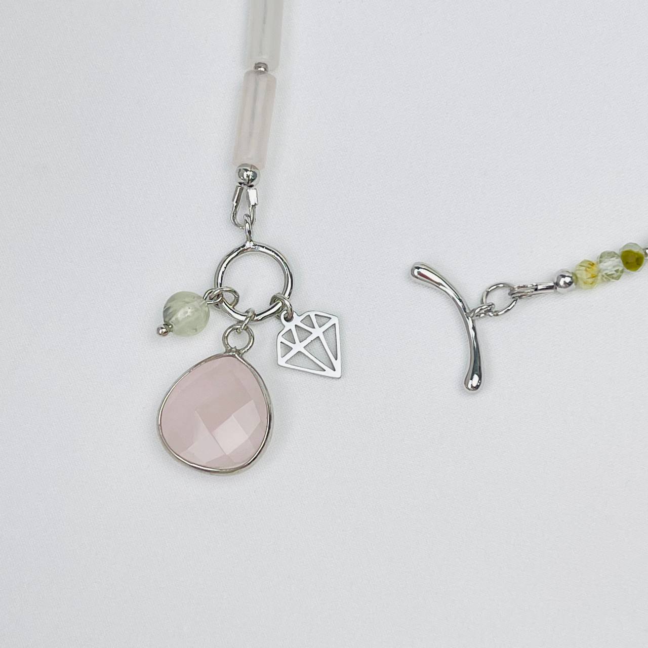 Радуга Самоцветов Колье из Розового кварца и Пренита