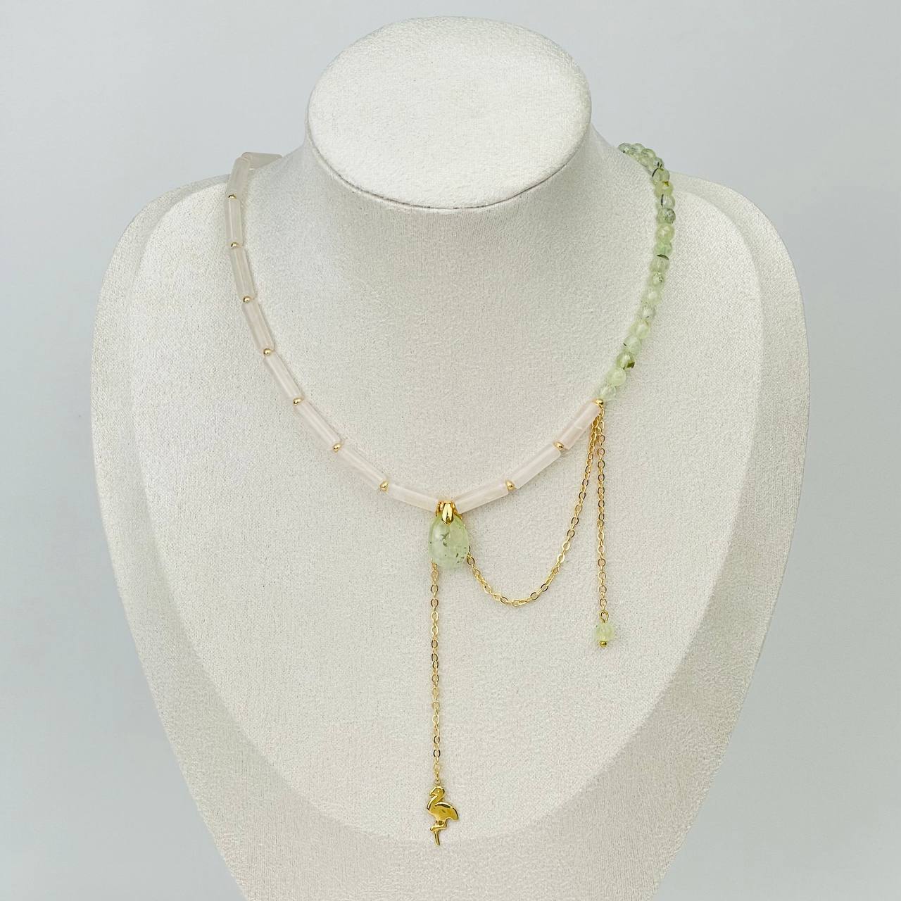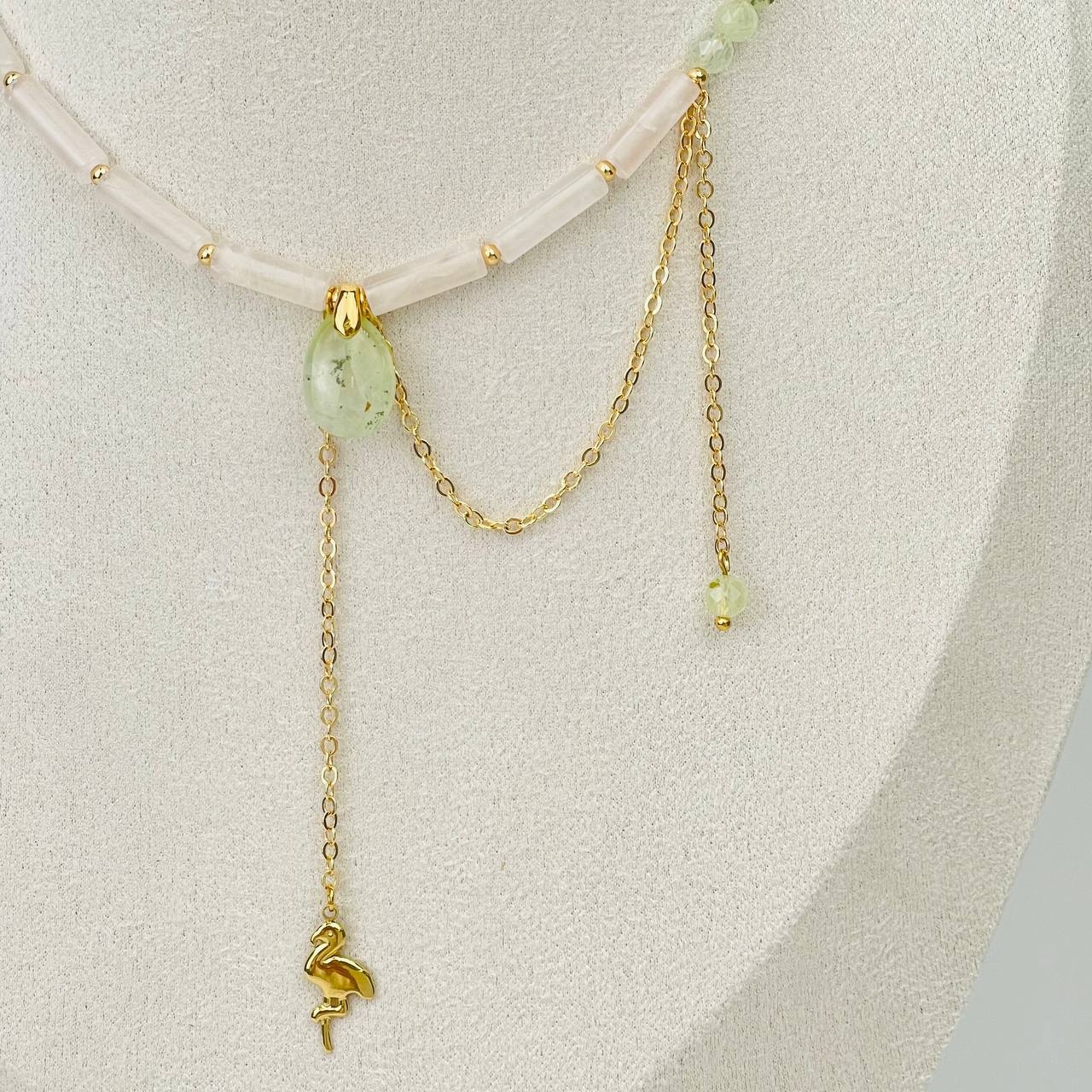 Радуга Самоцветов Колье из Розового кварца и Пренита