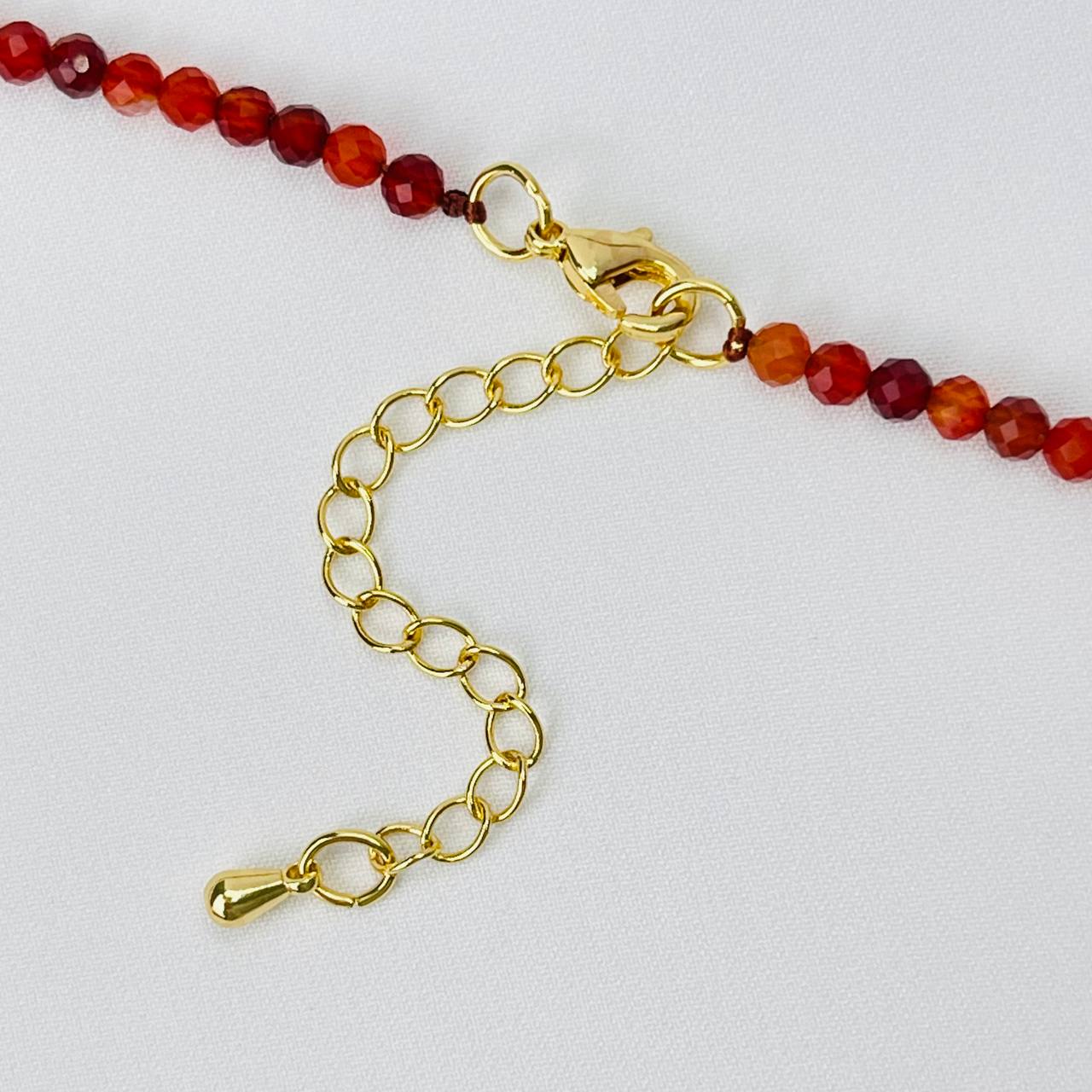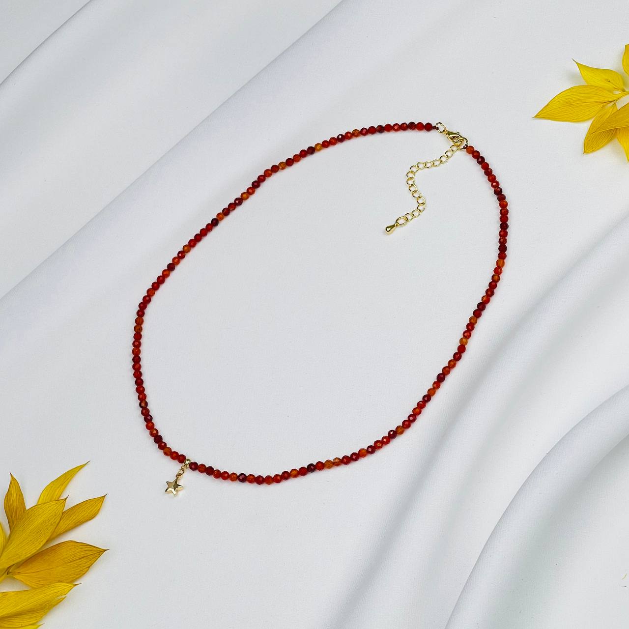 Цвет камня: Коньячный Месторожден..показатьие: Вьетнам Камень: Сердолик Покрытие: Золото 14К Диаметр: 3 мм Поверхность: Граненый Производитель: Радуга Самоцветов (Россия) Тип замка: Карабин с цепочкойие: Вьетнам