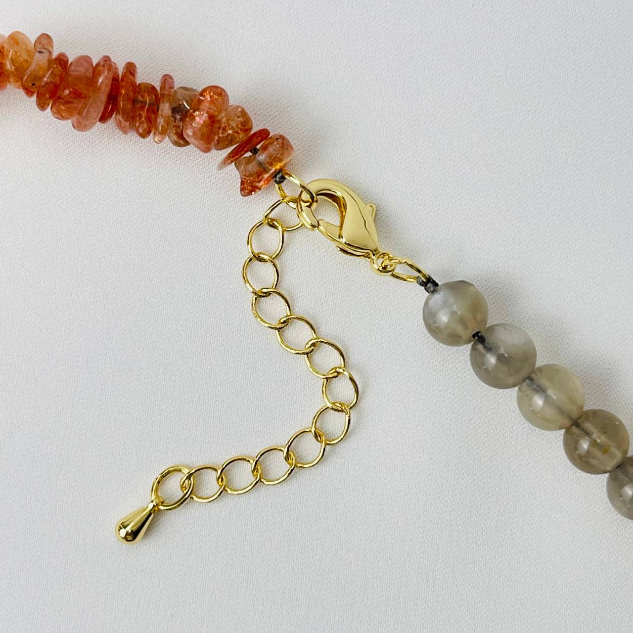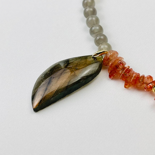 Радуга Самоцветов Колье из Солнечного и Лунного камня с кулоном из Лабрадорра