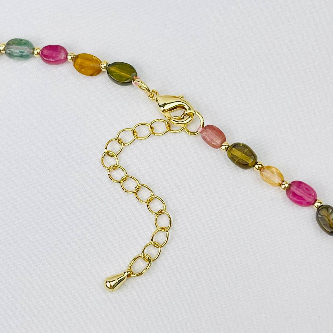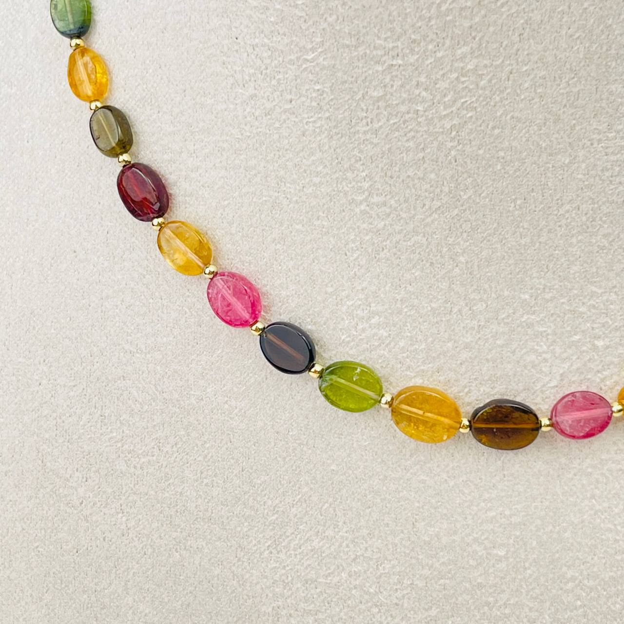 Цвет камня: Миксовый Месторождени..показатье: Бразилия Камень: Турмалин Покрытие: Золото 14К Диаметр: 4-5 мм Поверхность: Гладкий Производитель: Радуга Самоцветов (Россия) Тип замка: Карабин с цепочкойе: Бразилия