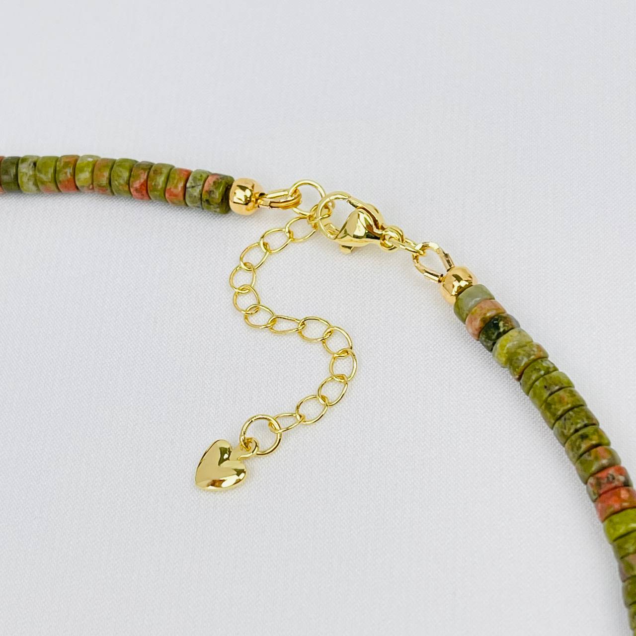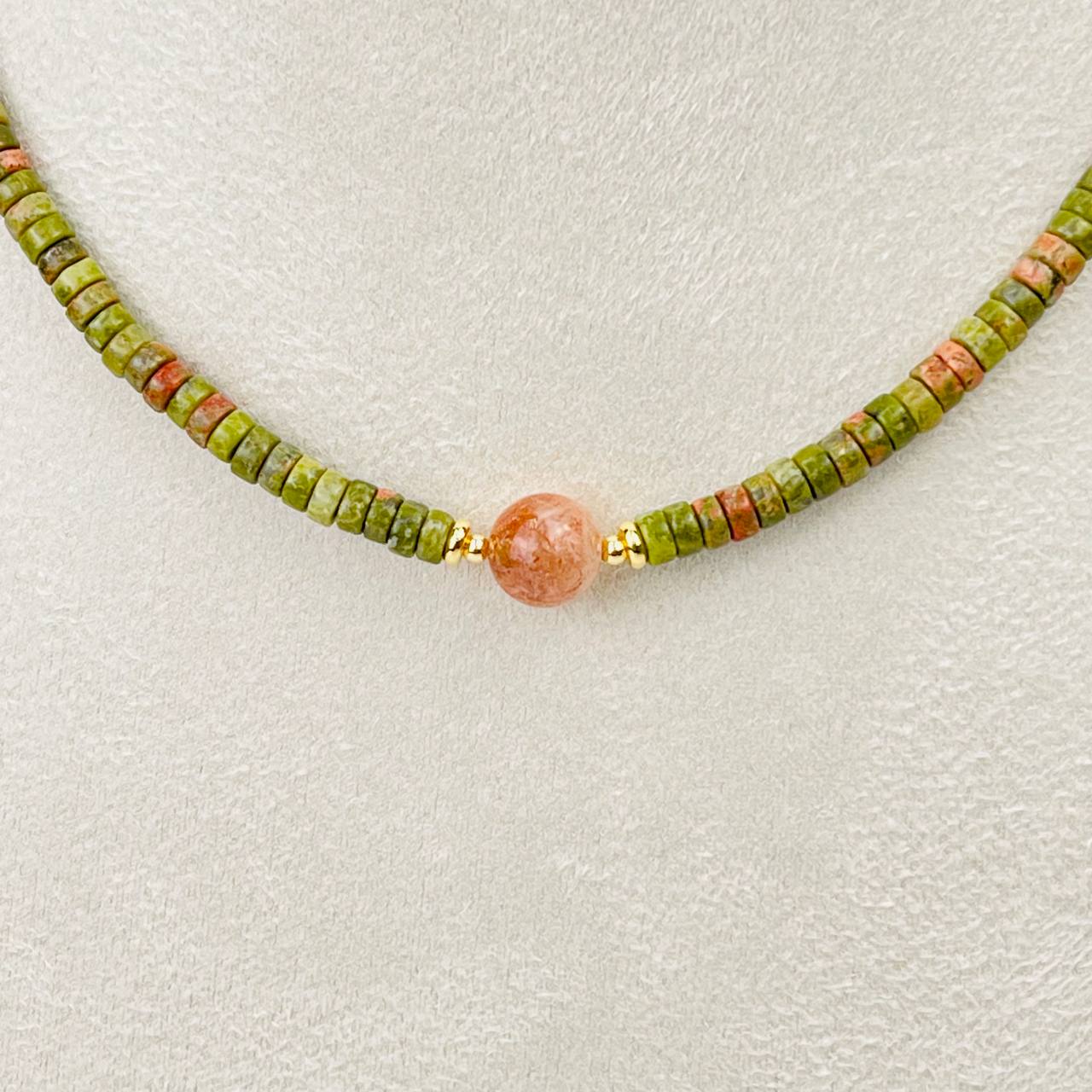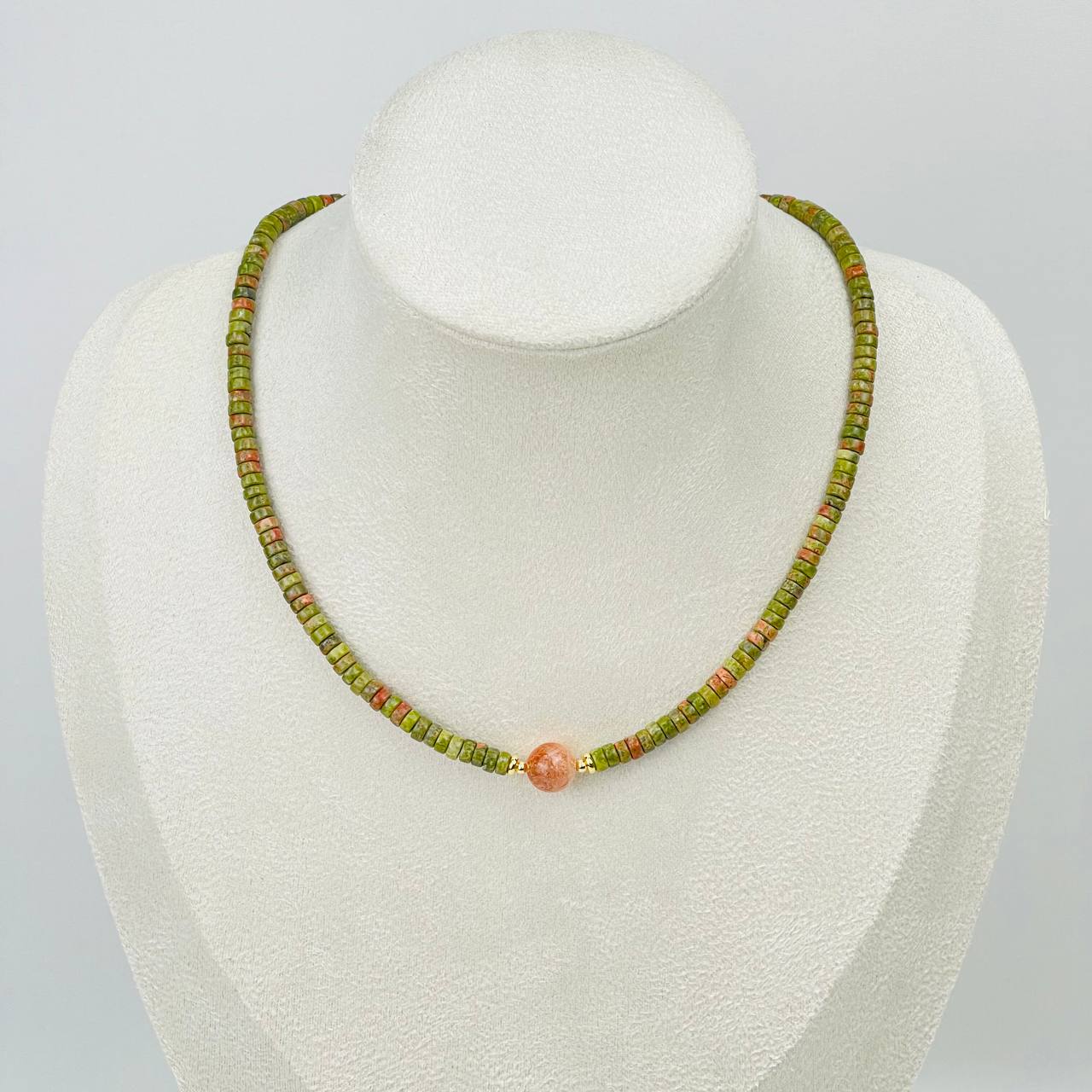 Радуга Самоцветов Колье из Унакита и Солнечного камня