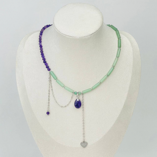 Радуга Самоцветов Колье из зеленого Кварца и Аметиста