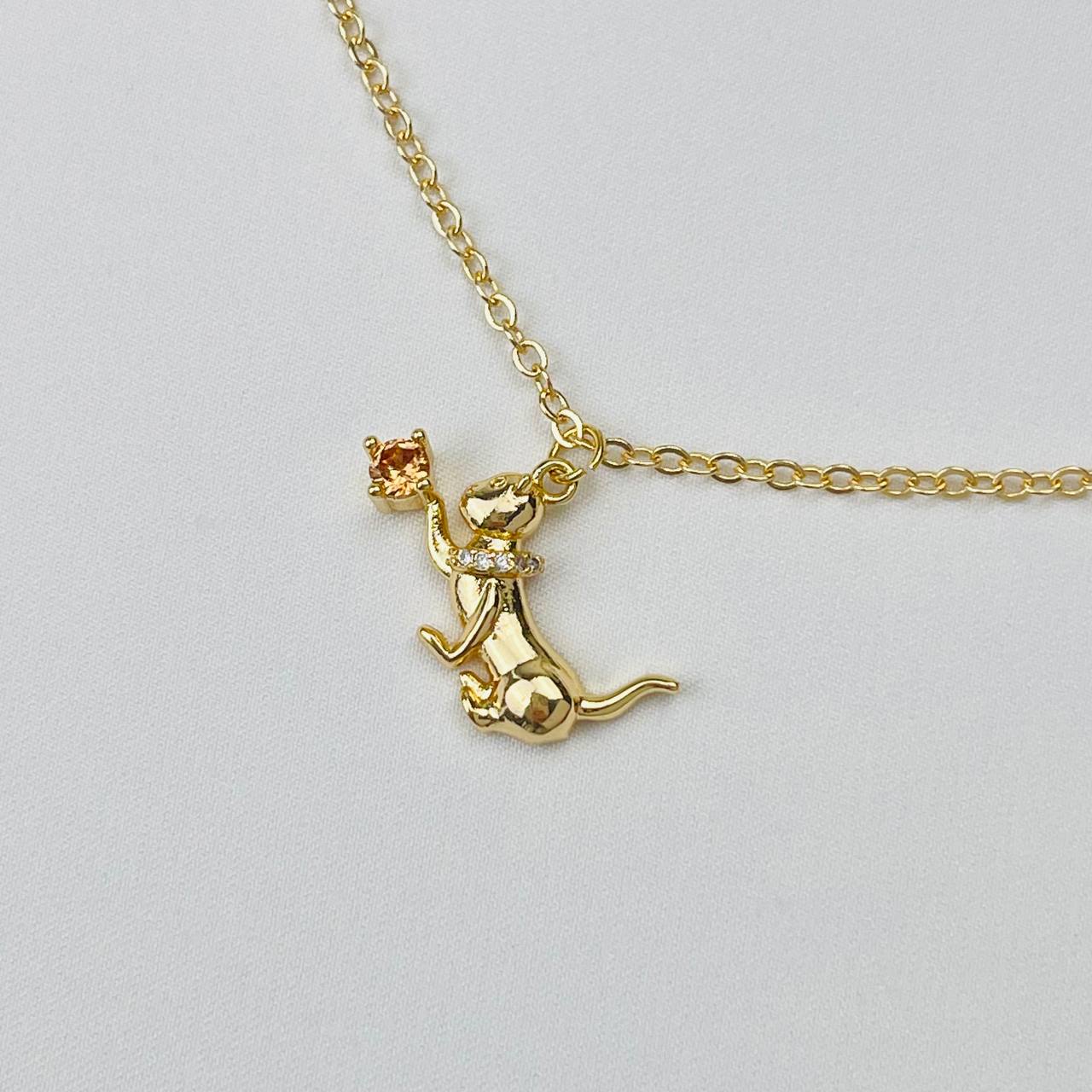 Радуга Самоцветов Колье на цепочке с камнем Гранат(Пироп) и подвеской Кошка