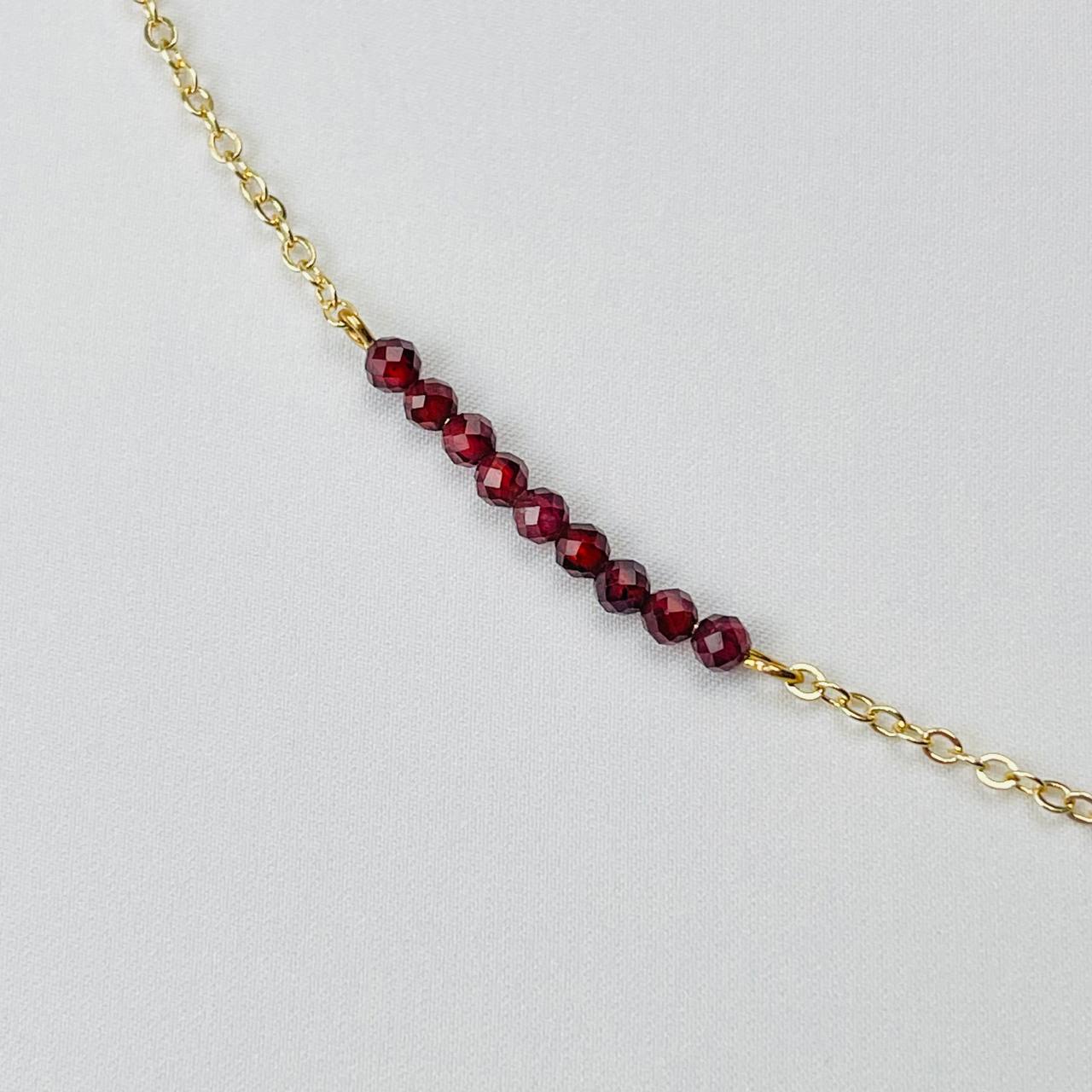 Цвет камня: Гранатовый Месторожде..показатьние: Индия Камень: Гранат Покрытие: Золото 14К Диаметр: 3 мм Поверхность: Граненый Производитель: Радуга Самоцветов (Россия) Тип замка: Карабин с цепочкойние: Индия