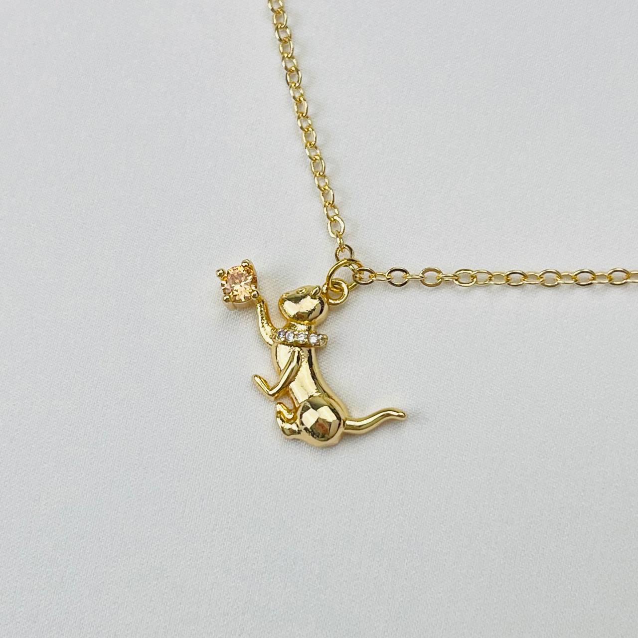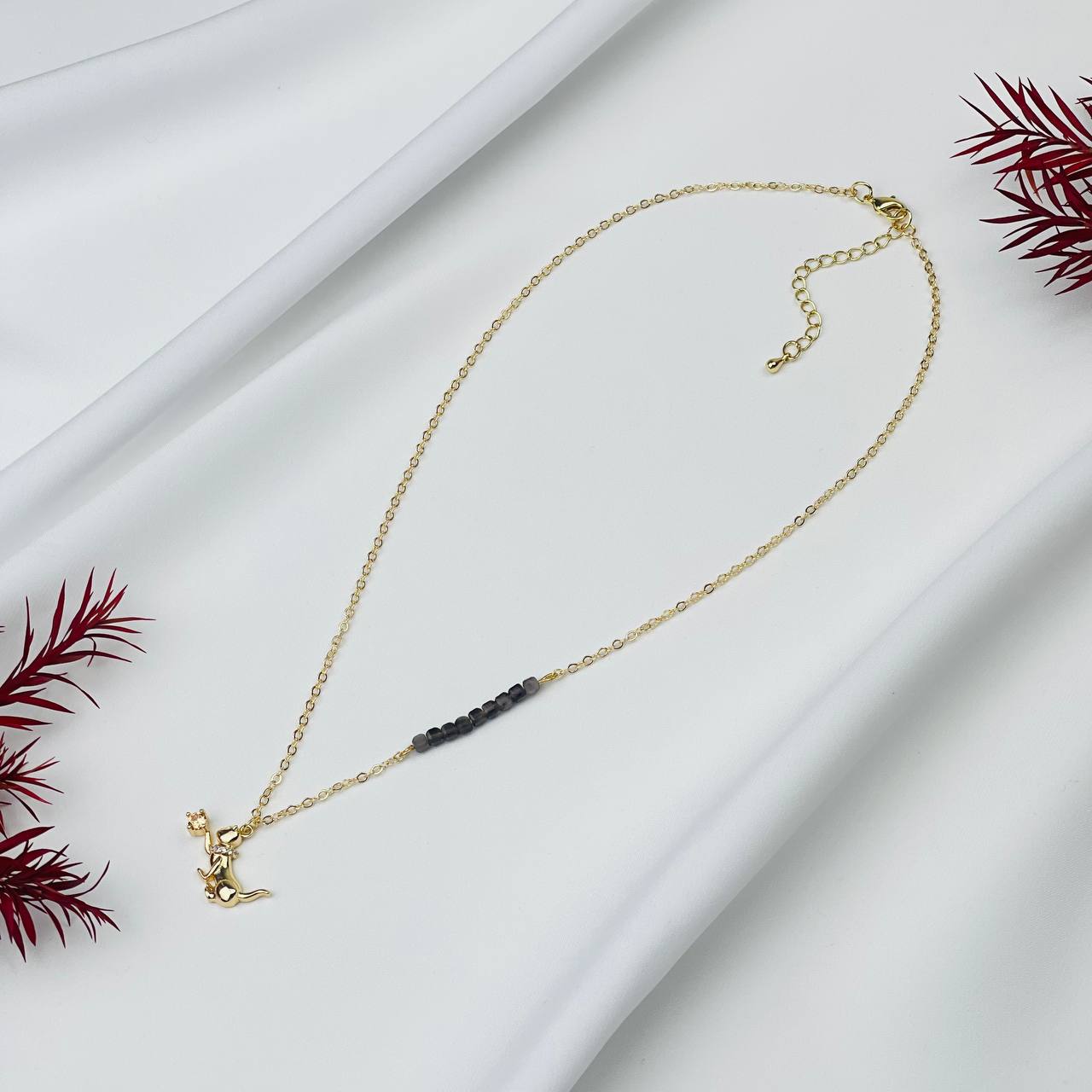 Радуга Самоцветов Колье на цепочке с камнем Обсидиан и подвеской "Кошка"