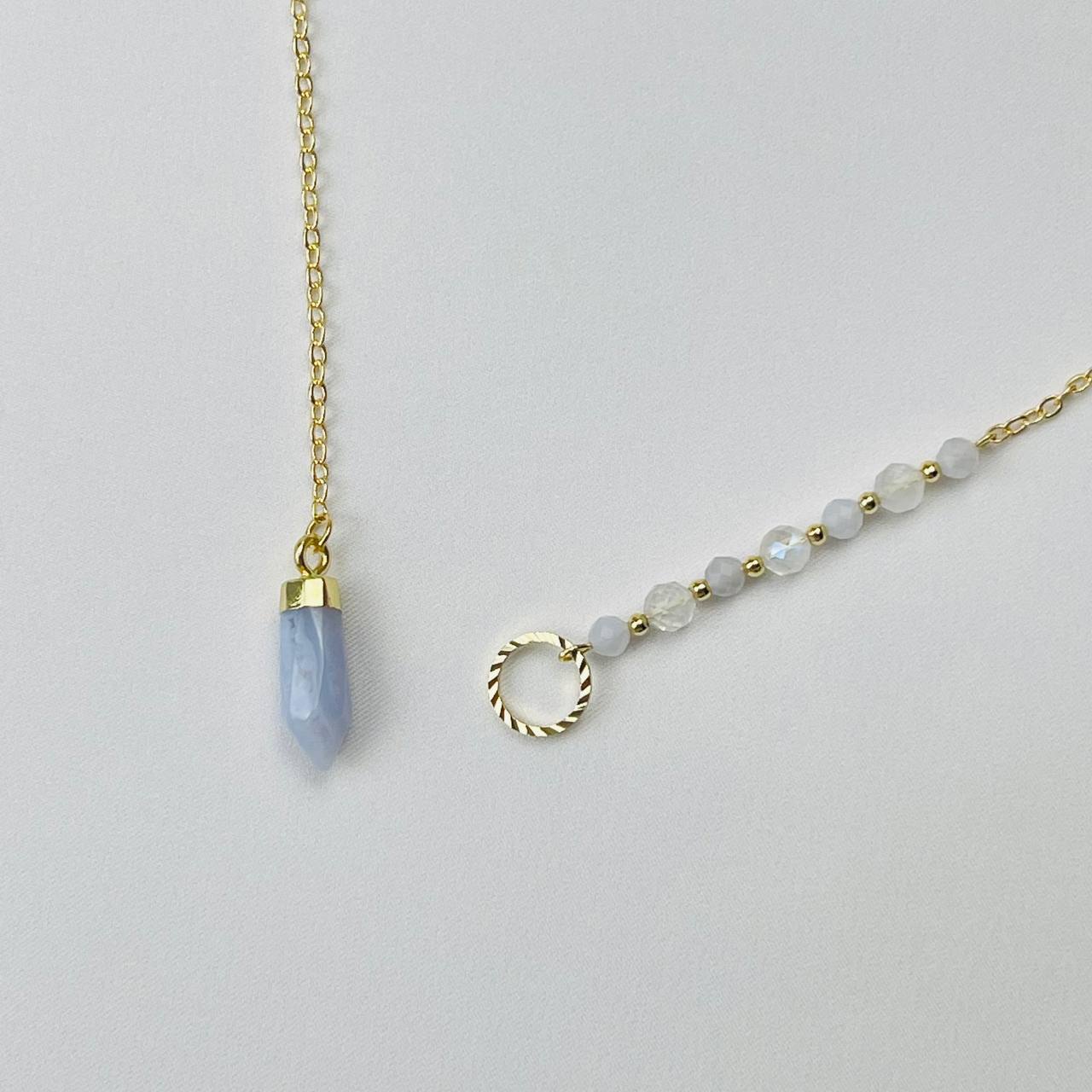 Радуга Самоцветов Колье на цепочке с Лунным камнем и Голубым агатом