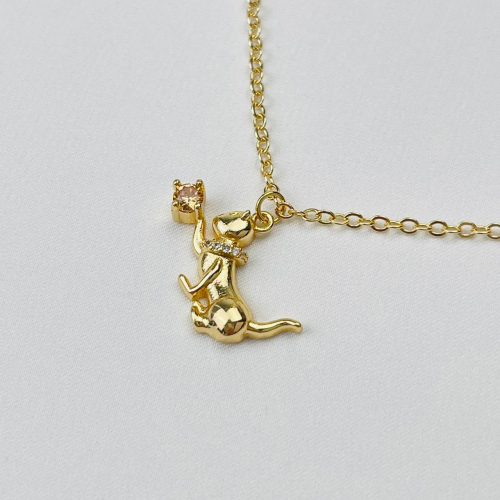 Радуга Самоцветов Колье на цепочке с Лунным камнем и подвеской "Кошка"