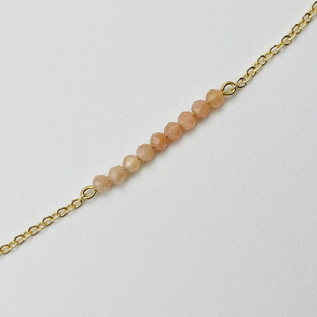Цвет камня: Бежевый Месторождение..показать: Индия Камень: Лунный камень Покрытие: Золото 14К Диаметр: 3,5 мм Поверхность: Граненый Производитель: Радуга Самоцветов (Россия) Тип замка: Карабин с цепочкой: Индия