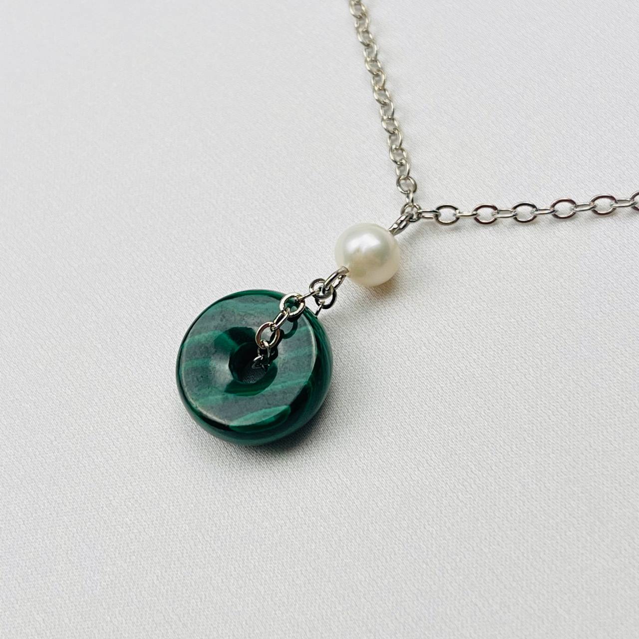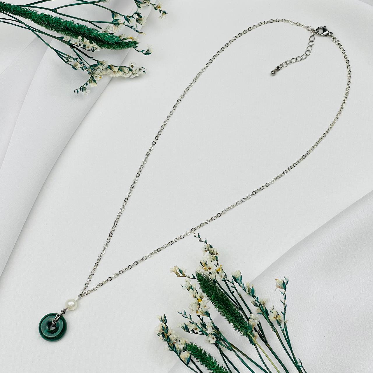 Радуга Самоцветов Колье на цепочке с Малахитом и Жемчугом