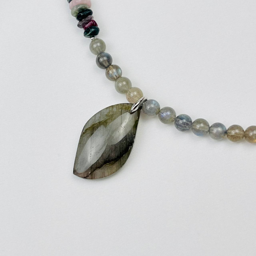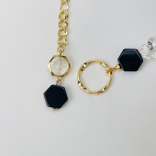 Радуга Самоцветов Колье с цепочкой из Агата и Горного Хрусталя