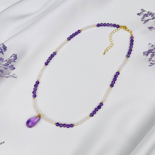 Радуга Самоцветов Колье "Венера & Сатурн" из Аметиста и Розового кварца