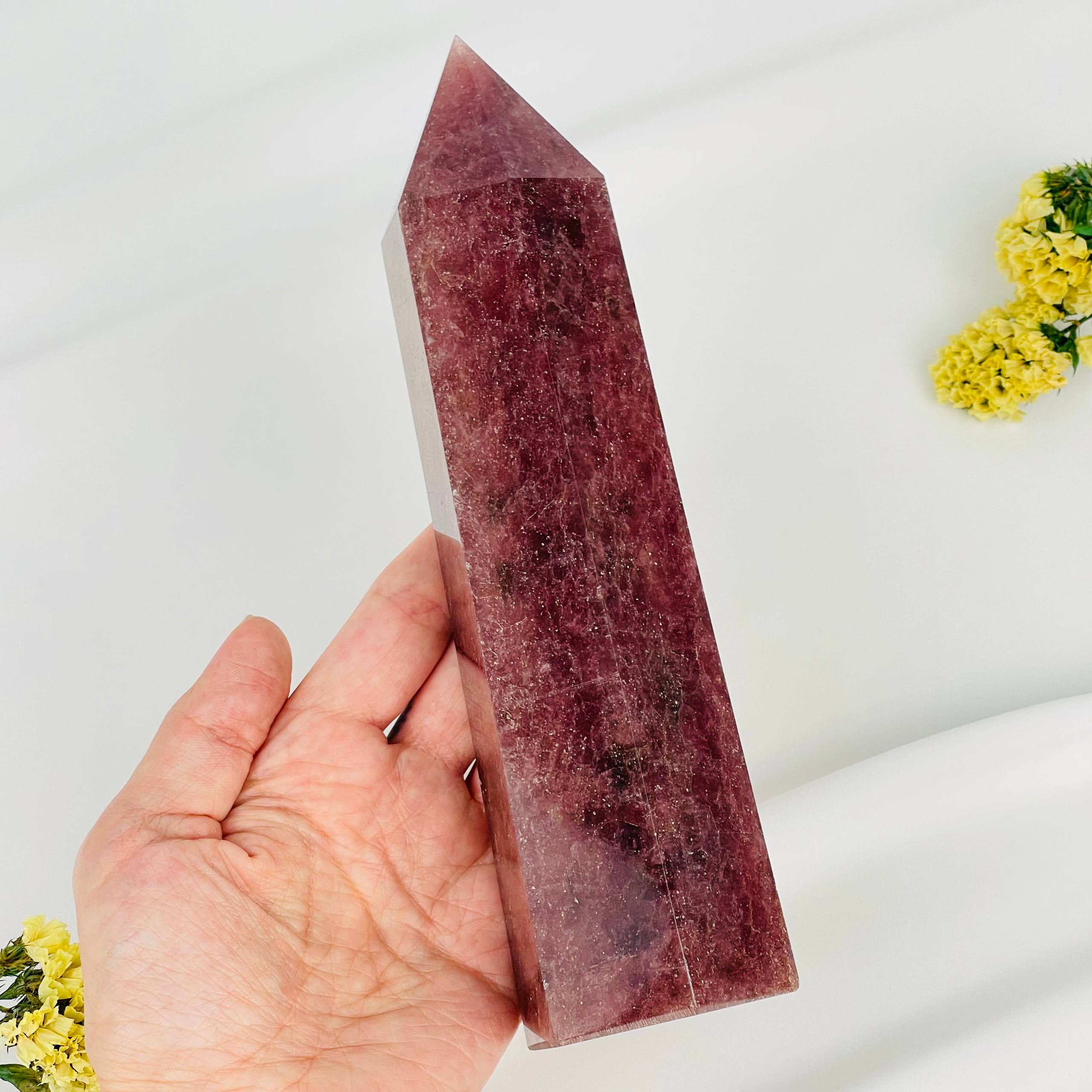 Цвет камня: Розовый Месторождение..показать: Бразилия Камень: Клубничный кварц Поверхность: Гладкий/Граненый Размер: 5х20 см: Бразилия