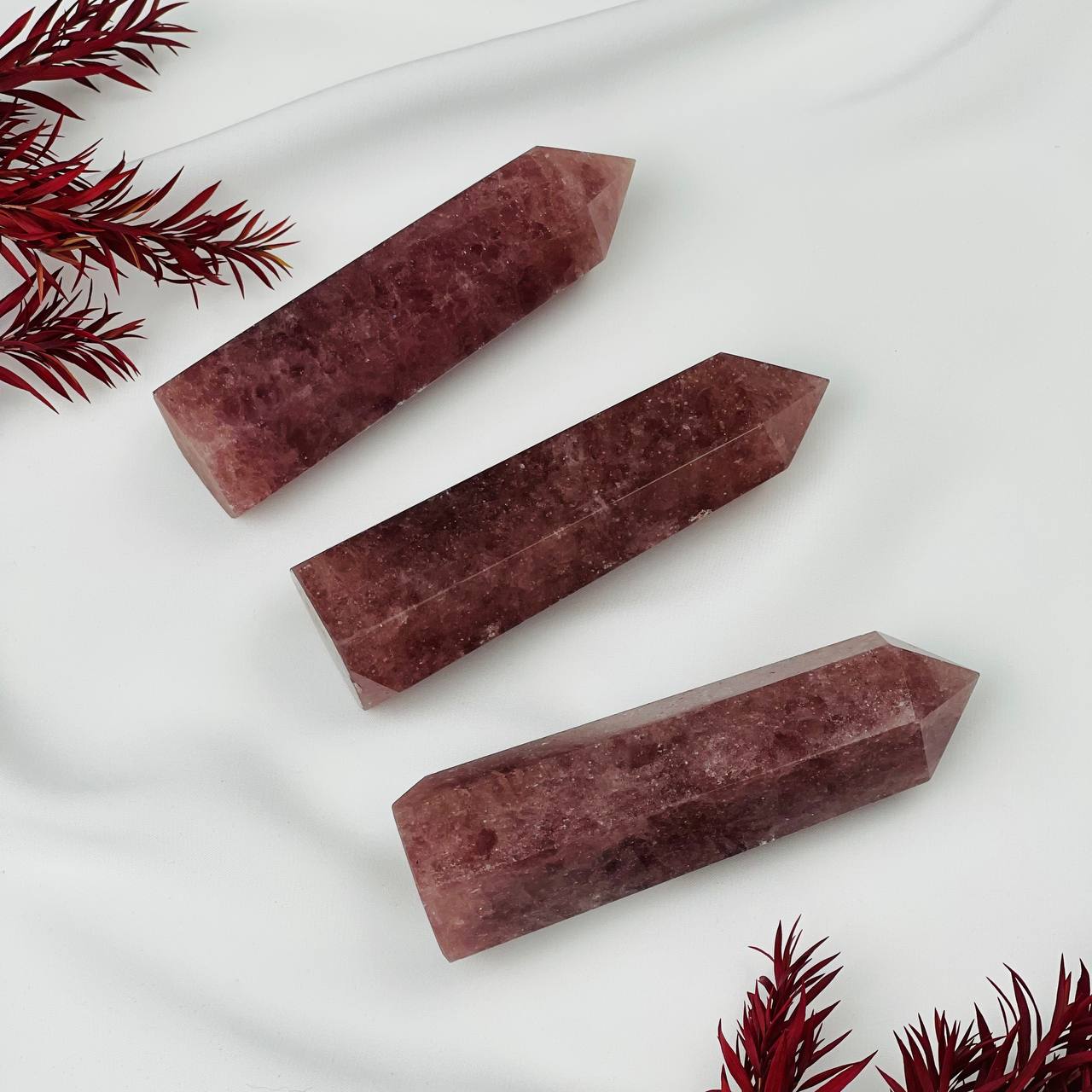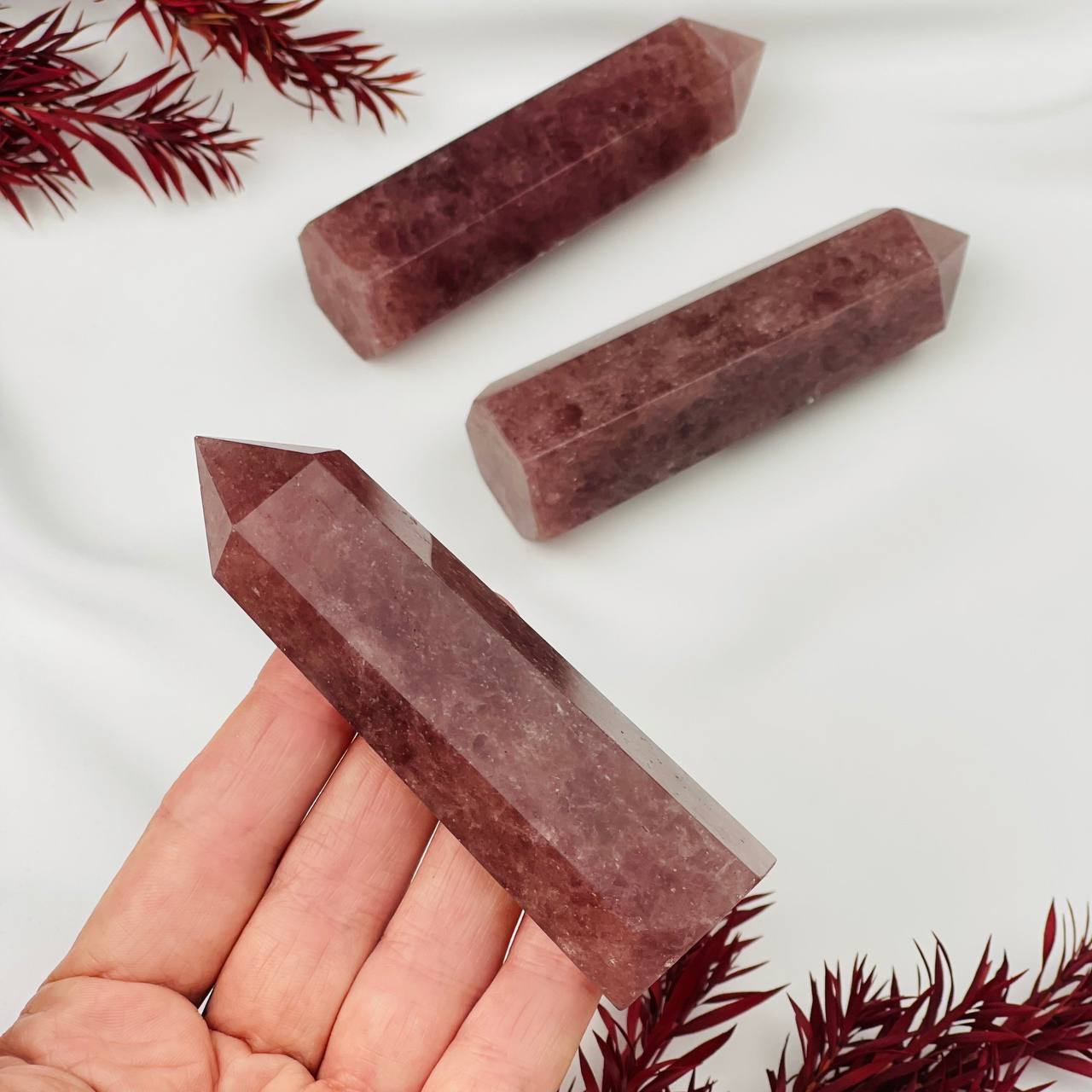 Цвет камня: Красный Месторождение..показать: Бразилия Камень: Клубничный кварц Поверхность: Гладкий/Граненый Размер: 95-100 мм: Бразилия