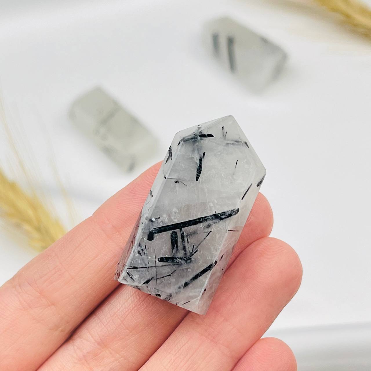 Радуга Самоцветов Кристалл из Кварца с включением Турмалина