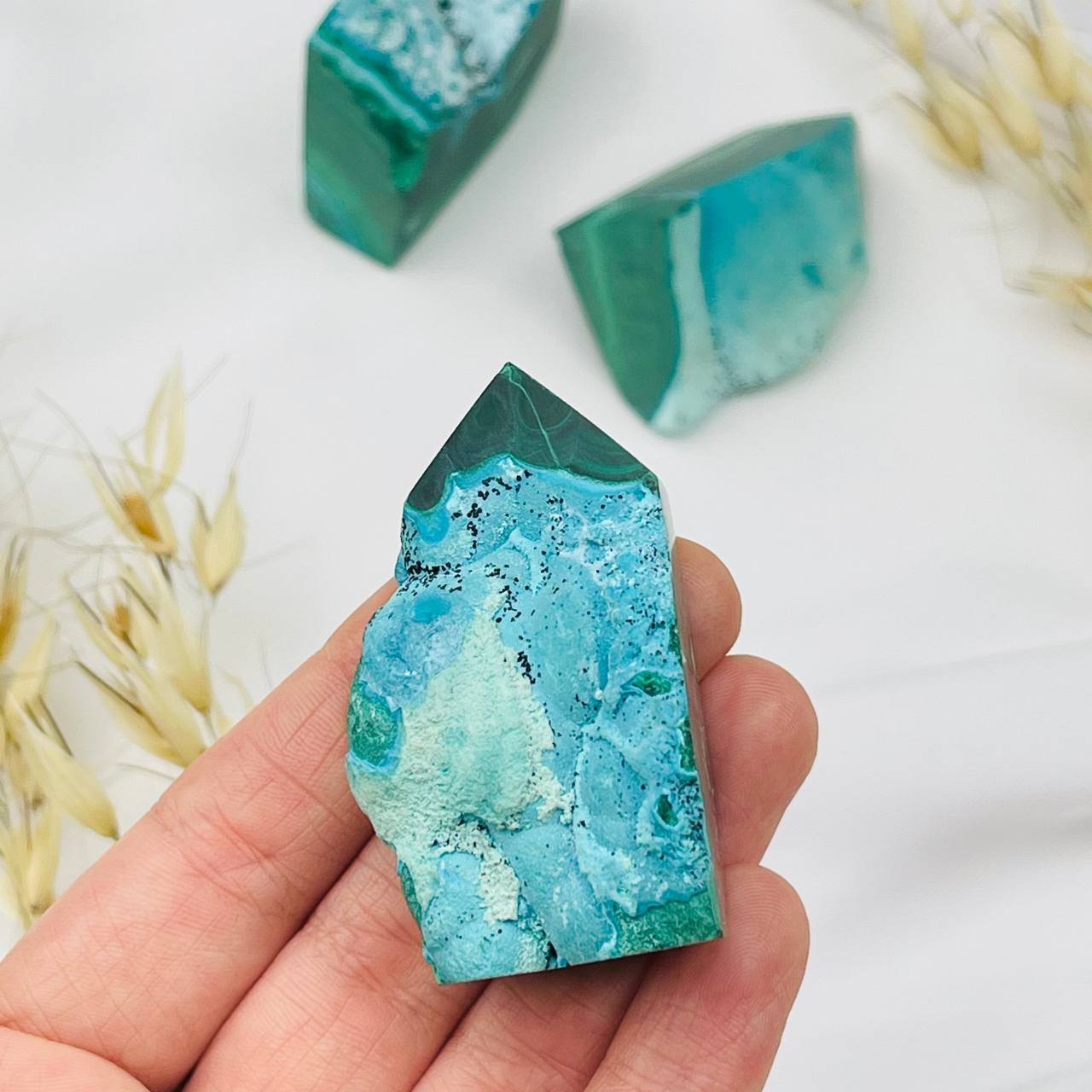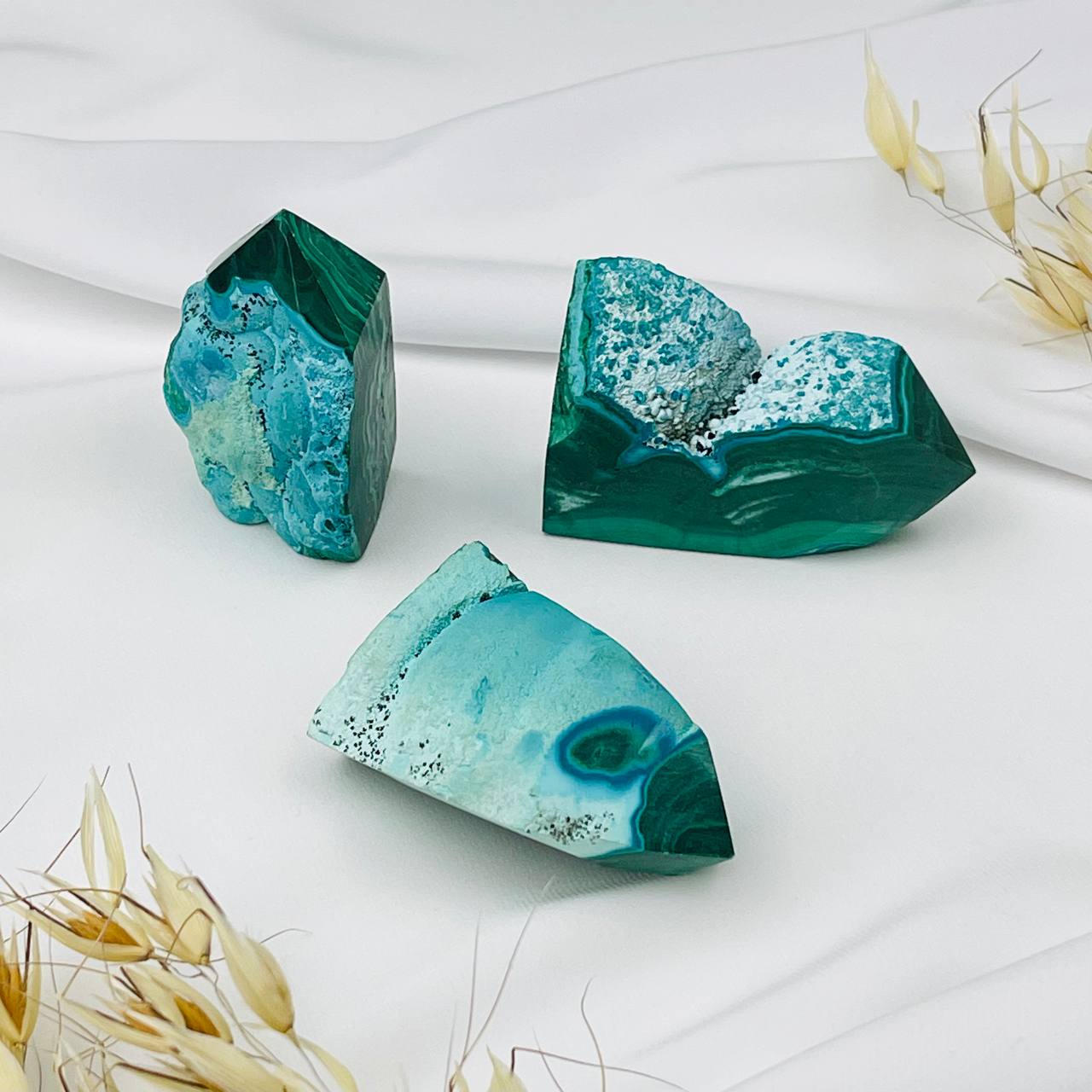Радуга Самоцветов Кристалл из Малахита с Хризоколлой