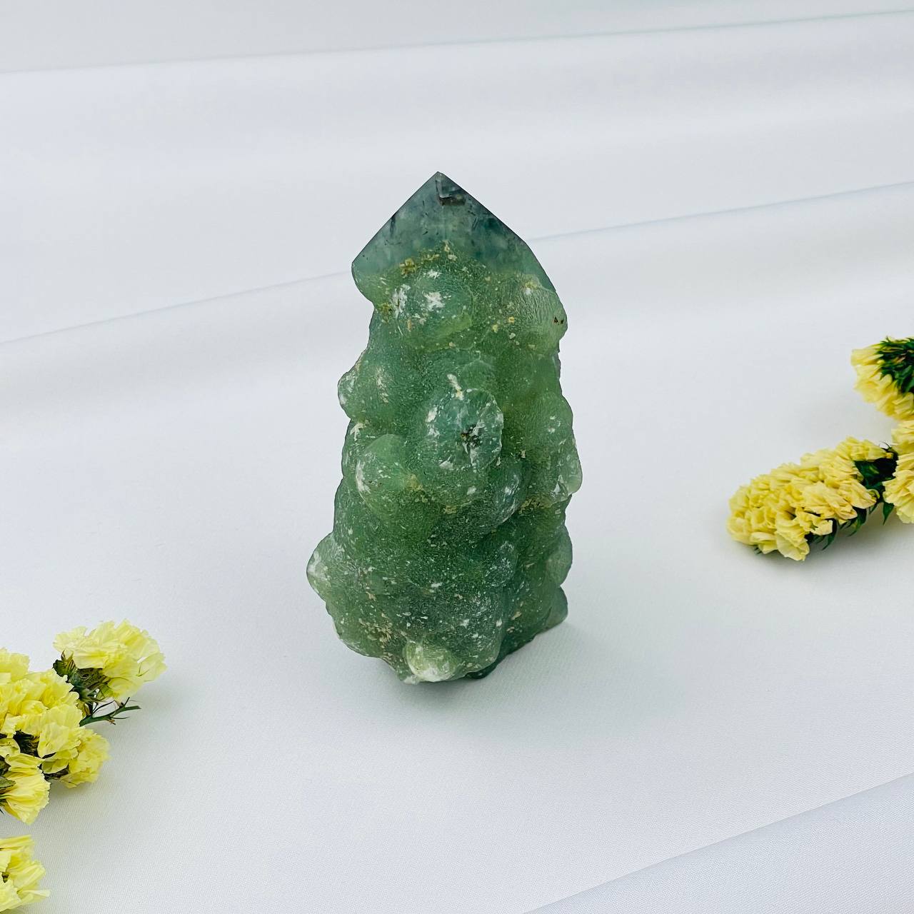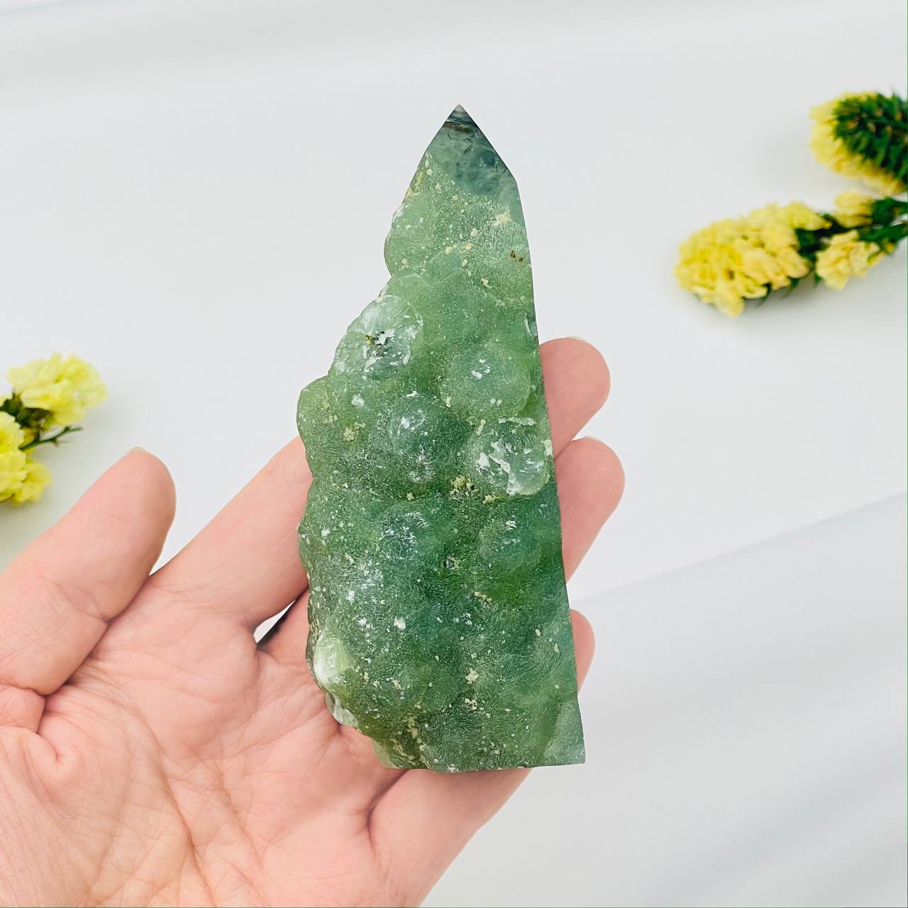 Цвет камня: Зелёный Месторождение..показать: Африка Камень: Пренит Поверхность: Гладкий/Необработанный Размер: 100 мм: Африка