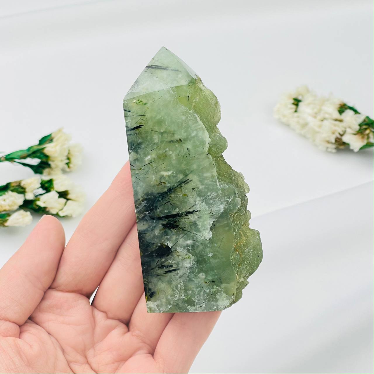 Цвет камня: Зелёный Месторождение..показать: Бразилия Камень: Пренит Поверхность: Гладкий/Необработанный Размер: 95 мм: Бразилия