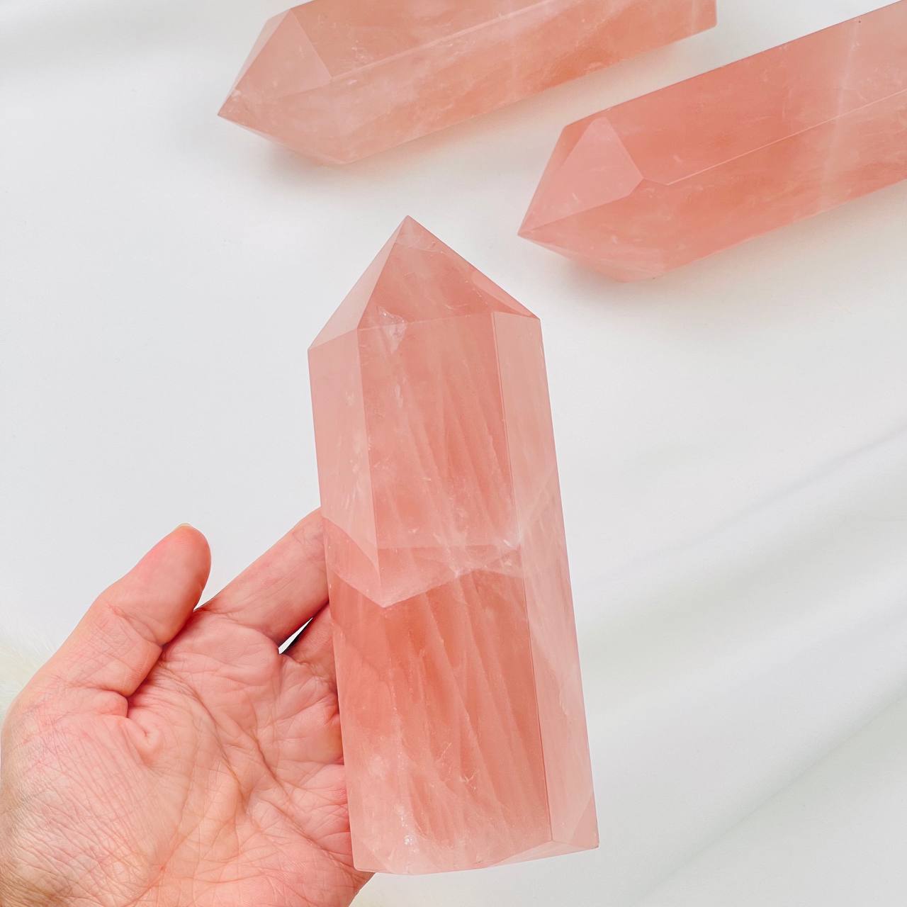 Цвет камня: Розовый Месторождение..показать: Бразилия Камень: Розовый кварц Поверхность: Гладкий/Граненый Размер: 14-15 см: Бразилия