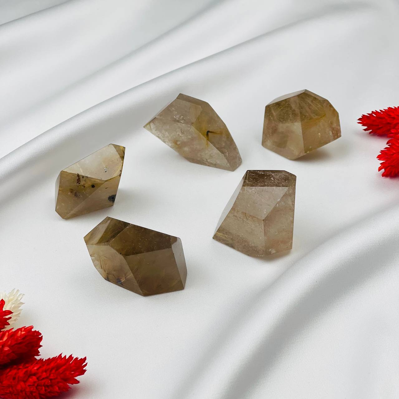 Цвет камня: Жёлтый Месторождение:..показать Бразилия Камень: Рутиловый кварц Поверхность: Гладкий/Граненый Размер: 3-5 см Бразилия