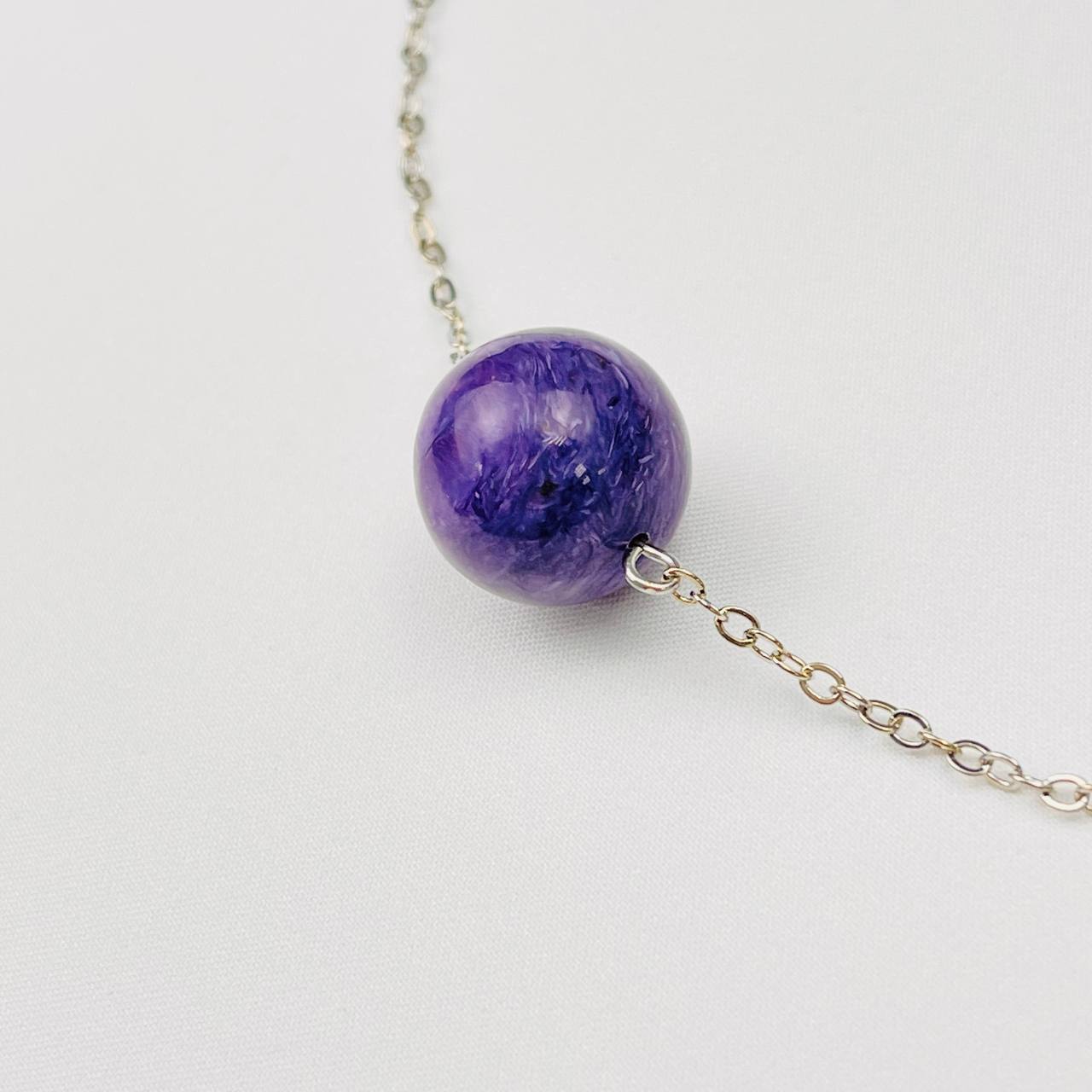 Цвет камня: Фиолетовый Месторожде..показатьние: Россия Камень: Чароит Покрытие: Бижутерный сплав Диаметр: 15 мм Поверхность: Гладкий Производитель: Радуга Самоцветов (Россия) Тип замка: Карабин с цепочкойние: Россия