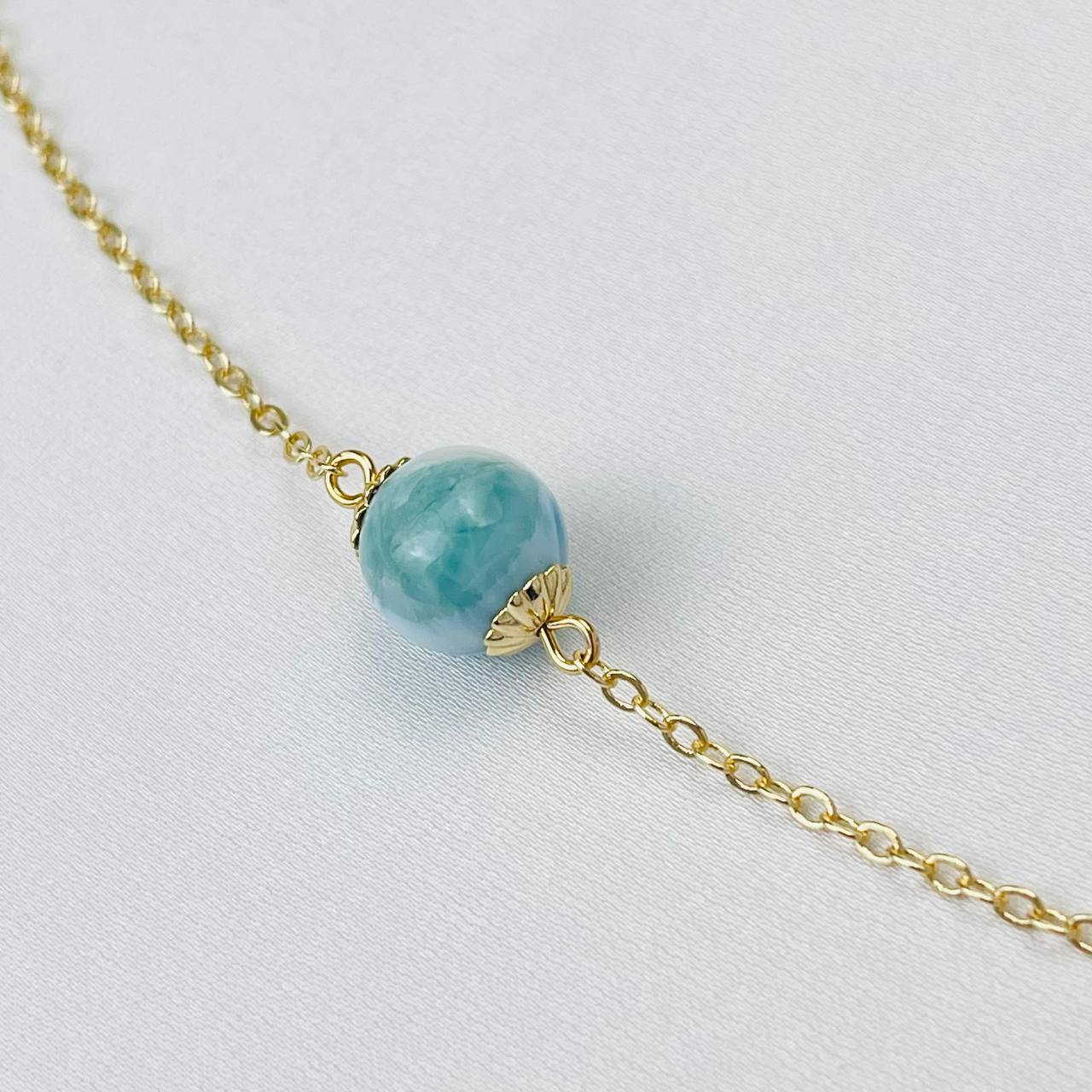 Цвет камня: Голубой Месторождение..показать: Доминиканская Республика Камень: Ларимар Покрытие: Золото 14К Диаметр: 10 мм Поверхность: Гладкий Производитель: Радуга Самоцветов (Россия) Тип замка: Карабин с цепочкой: Доминиканская Республика