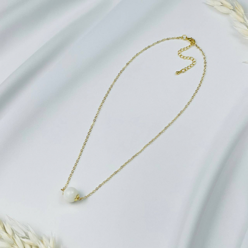 Цвет камня: Белый Камень: Перламу..показатьтр Покрытие: Бижутерный сплав Поверхность: Гладкий Размер: 18х18 мм Производитель: Радуга Самоцветов (Россия) Тип замка: Карабин с цепочкойтр