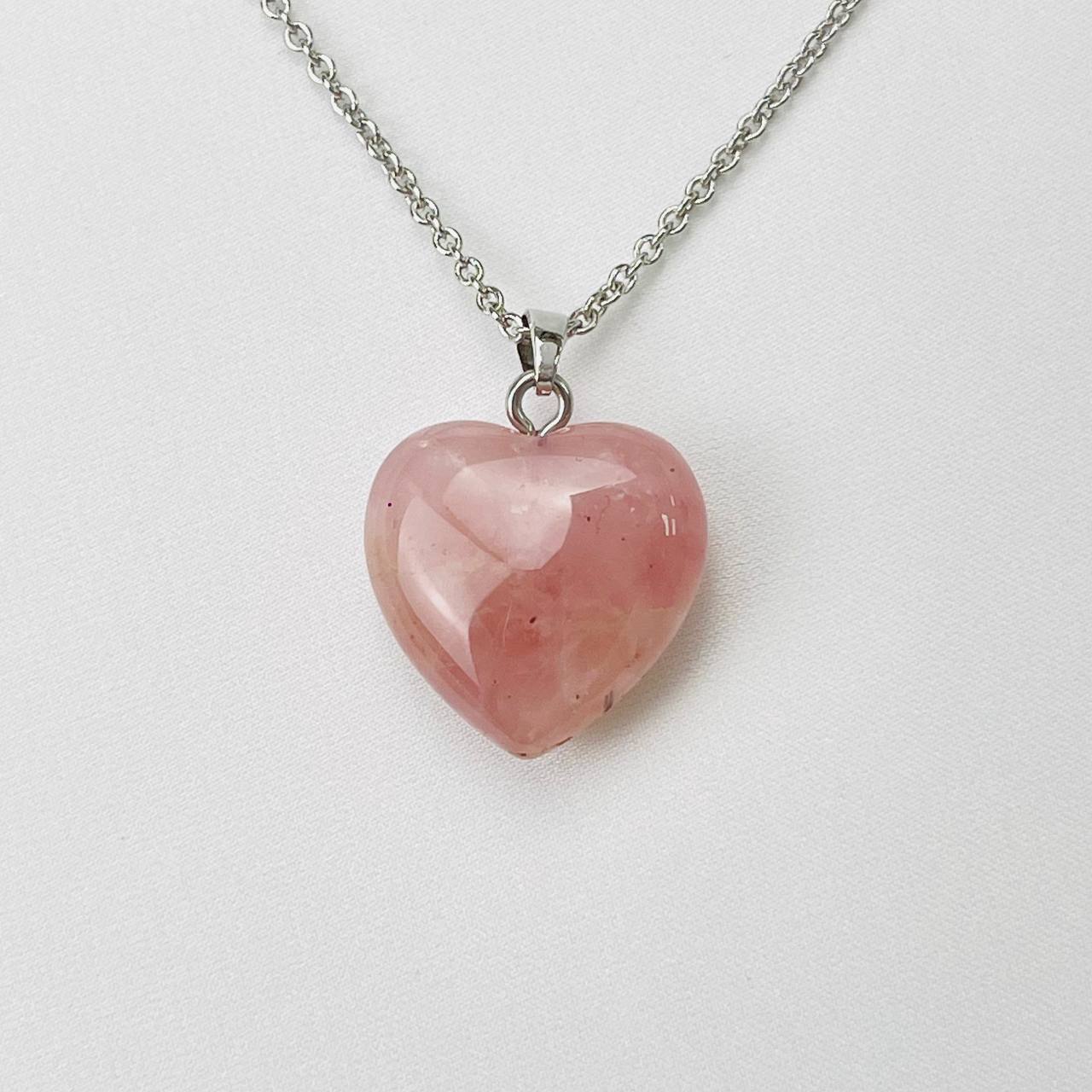 Радуга Самоцветов Кулон на цепочке "Сердце" из Розового кварца
