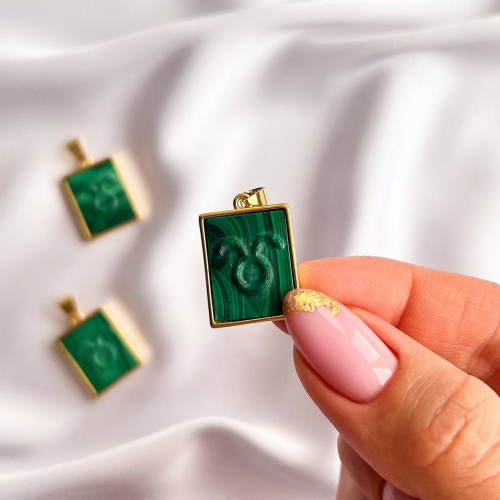 Радуга Самоцветов Кулон со знаком зодиака "Овен" из Малахита