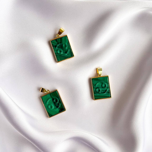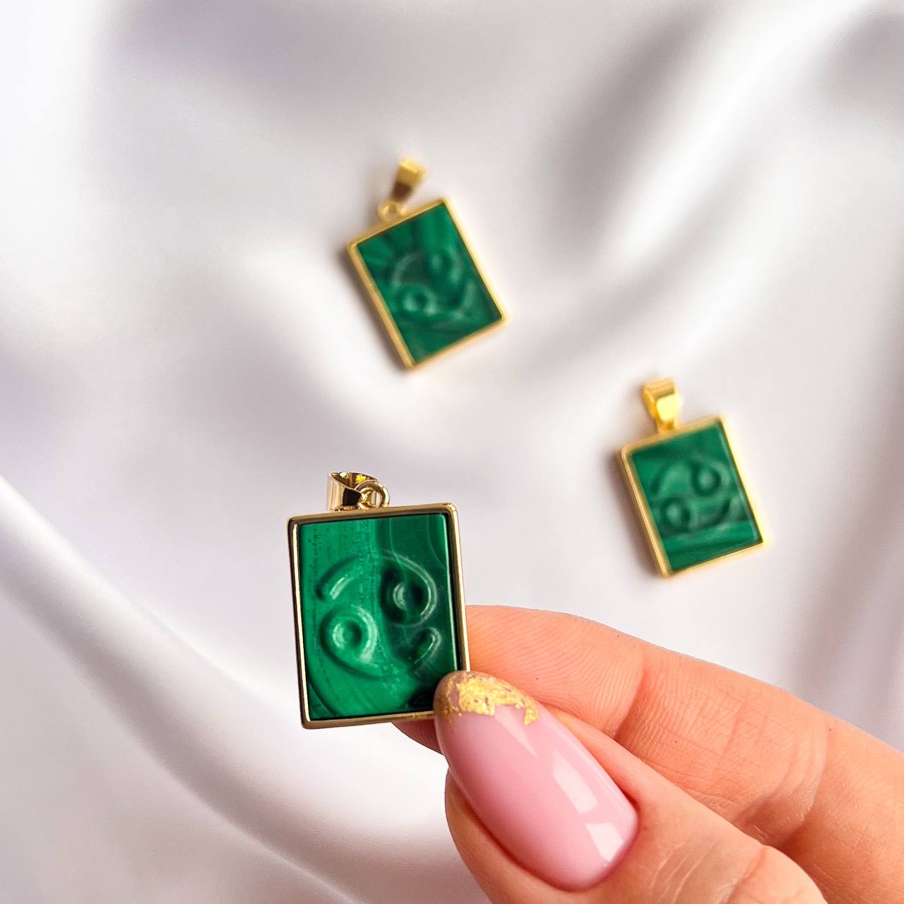 Радуга Самоцветов Кулон со знаком зодиака "Рак" из Малахита