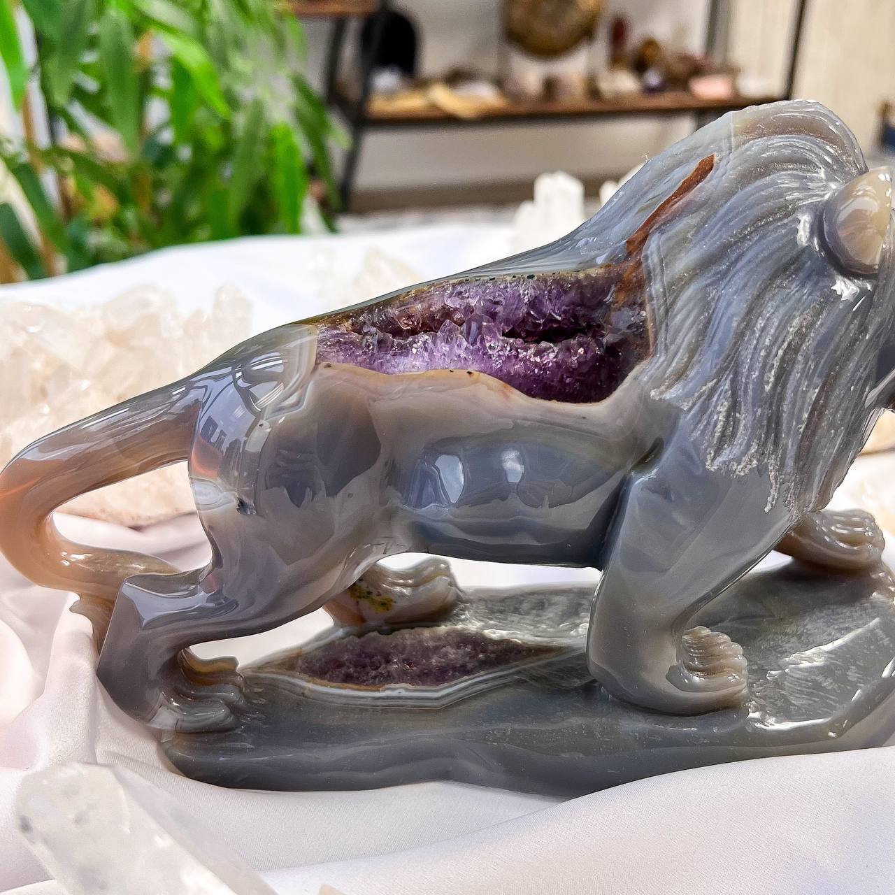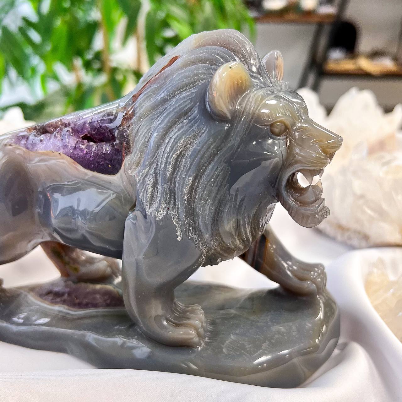 Радуга Самоцветов Лев резной из Агата с жеодой
