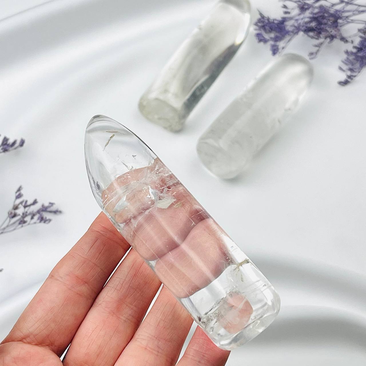 Цвет камня: Прозрачный Месторожде..показатьние: Бразилия Камень: Горный хрусталь Поверхность: Гладкий Размер: 30х95 ммние: Бразилия