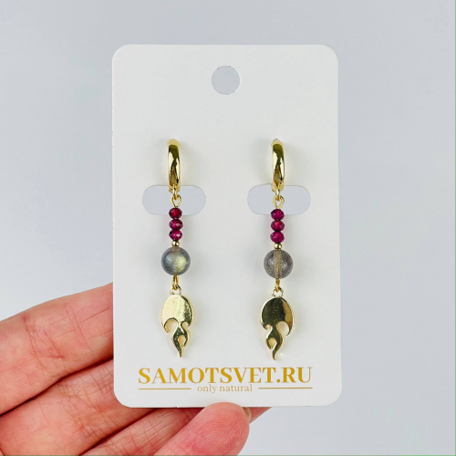 Радуга Самоцветов Серьги длинные из Граната и Лабрадора