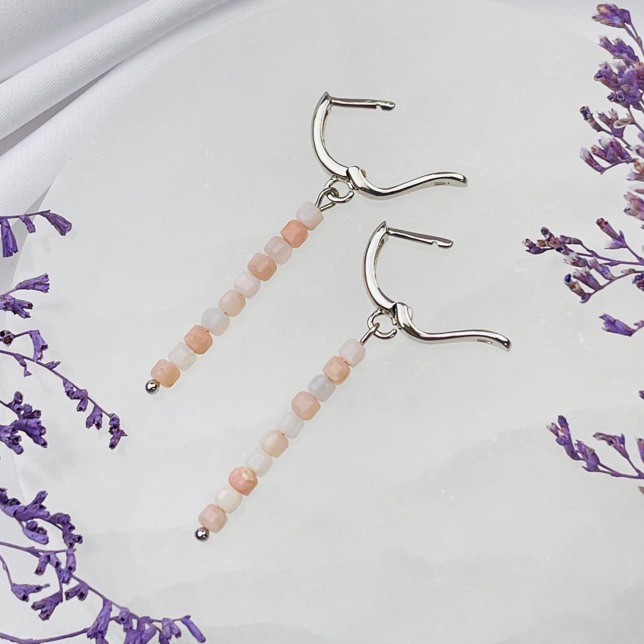 Радуга Самоцветов Серьги длинные из розового Опала
