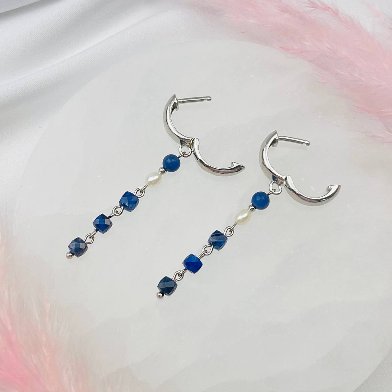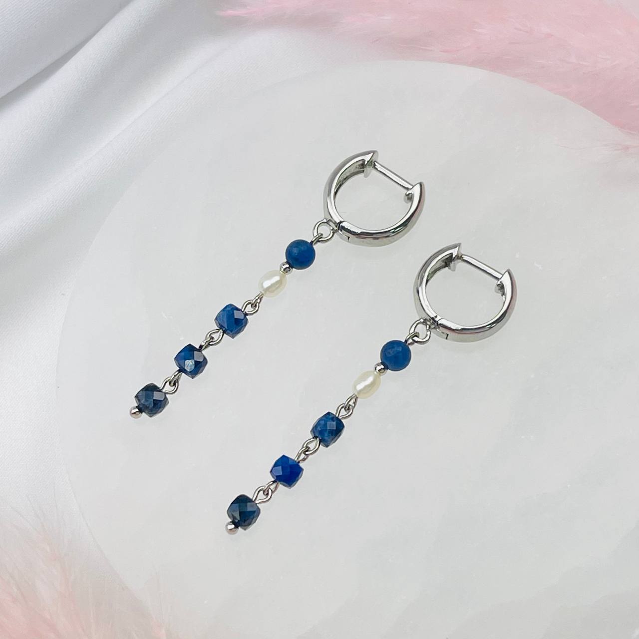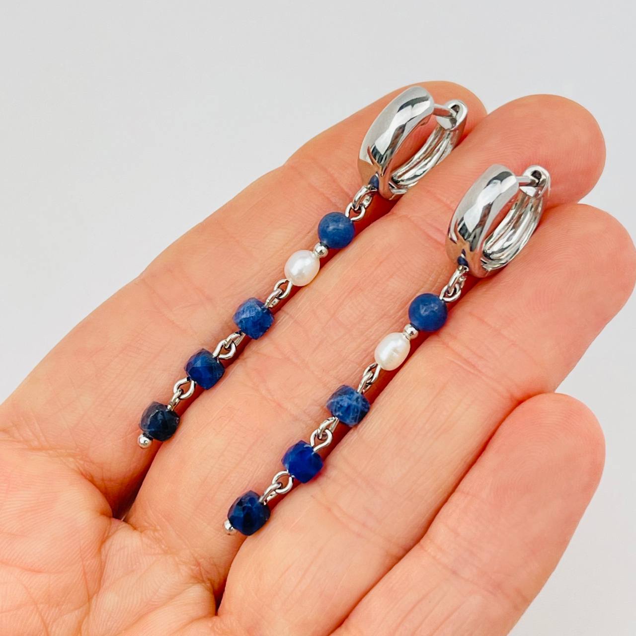 Радуга Самоцветов Серьги длинные из Содалита и Жемчуга